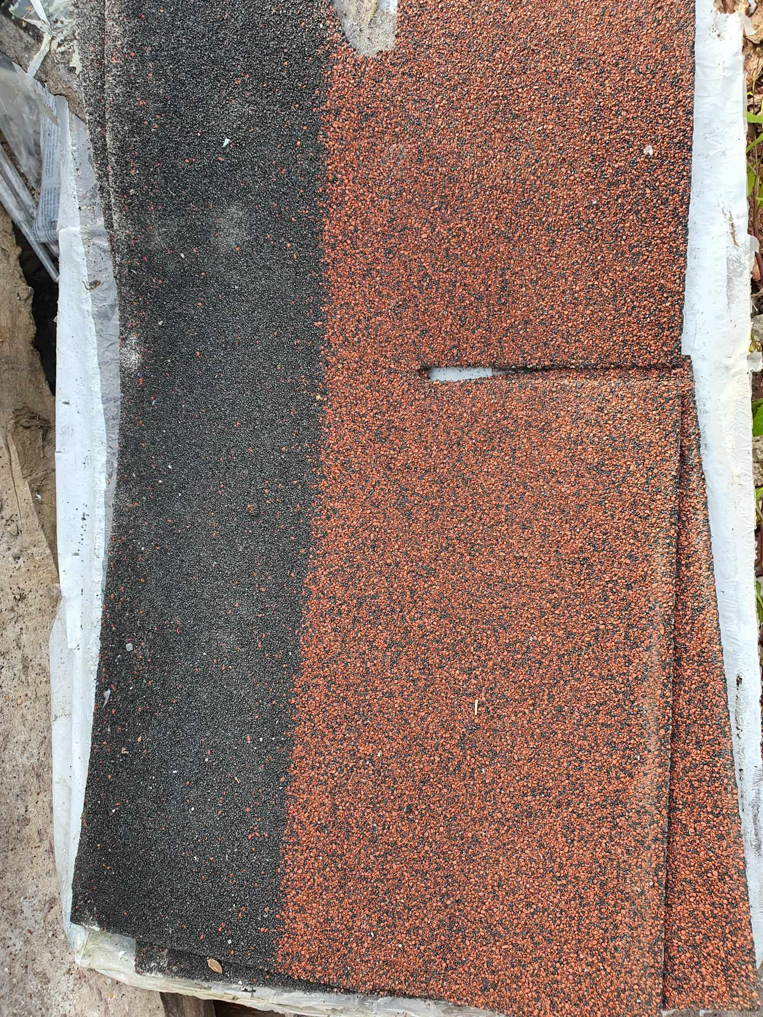 Tumepunast värvi bituumensindel pakid