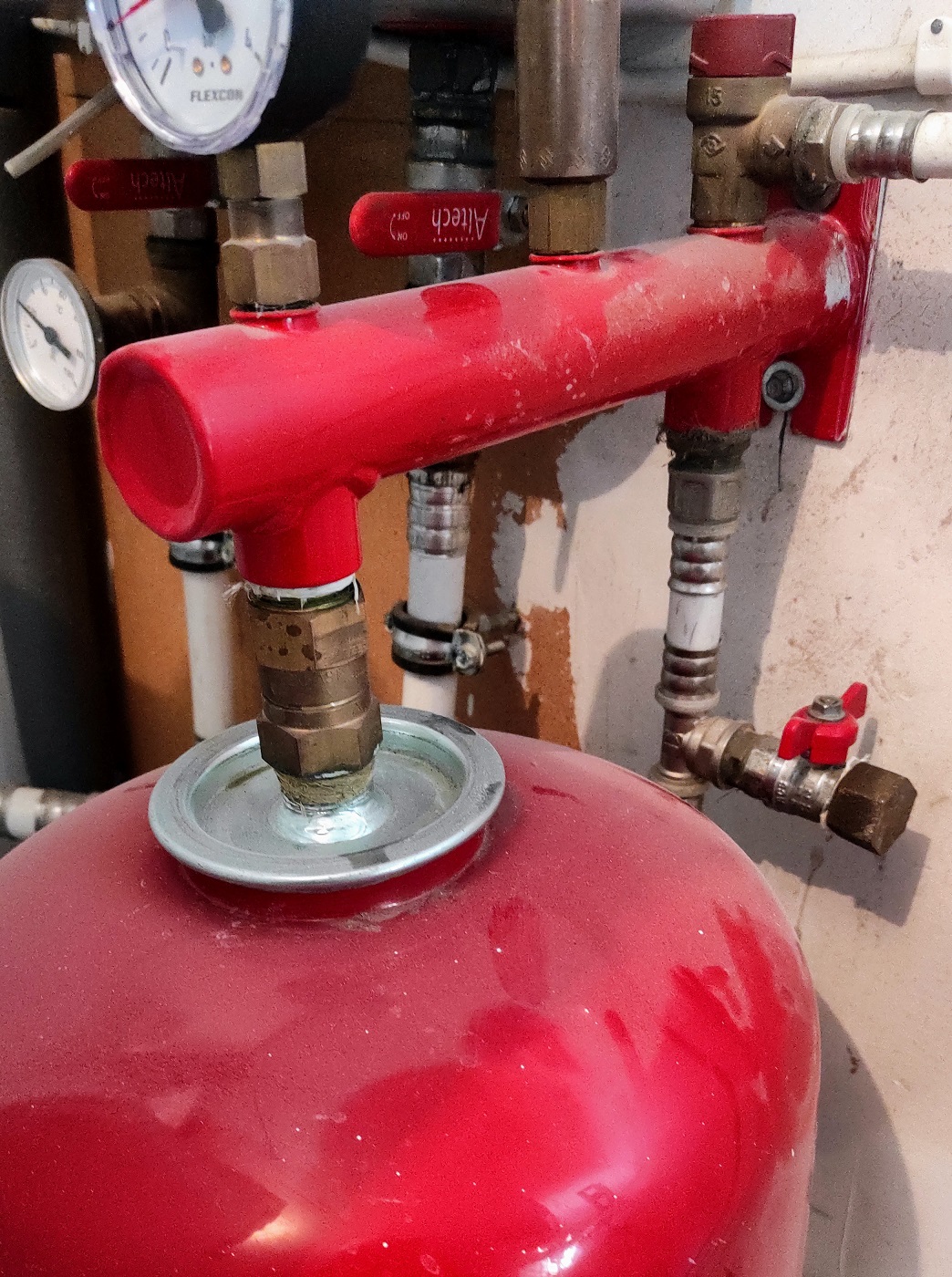 (See tundub mulle üldse kahtlane, kuna paisupaak on esimesel korrusel ja kuna majal on kaks korrust siis teise korruse vesi peaks nii ehk naa torust välja voolama, vähemalt see, mis on enne kollektorit (kollektoril on kraanid)).