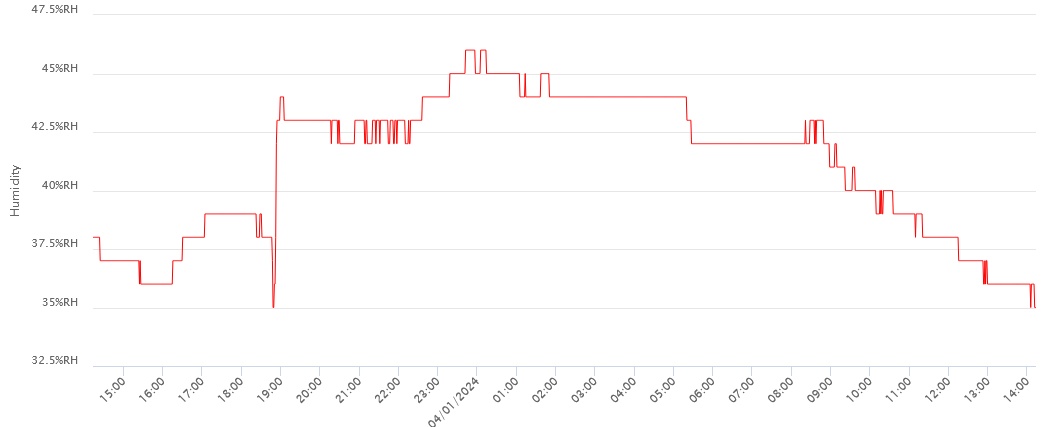 Niiskus on selline olnud, öösel maksimaalselt 46%, minimaalselt päeval 35%: