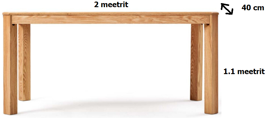 Mure siis järgmine - mõtlesin väikesesse korterisse meisterada pika laua, mida saaks kasutada nii söömiseks kui ka arvutitööks. Laua pealmine osa võiks olla liimpuitplaadist (liimpuitkilp), mõõtmetega 40 cm x 200 cm.