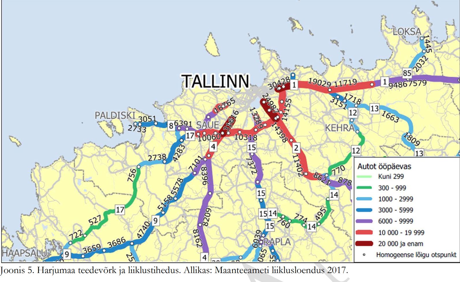 Tallinna linnapiirkond 2014: Liiklusloendus Harjumaal 2017: