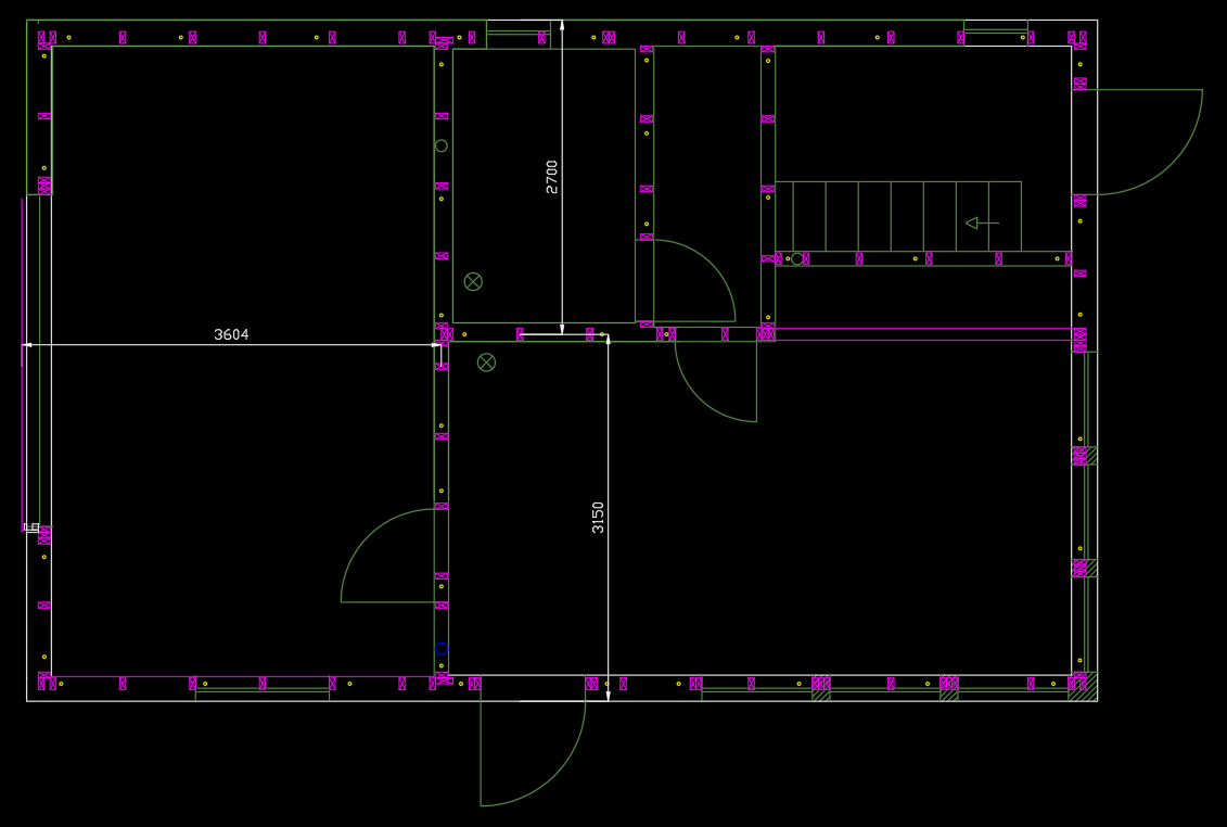 Siiski tänud veelkord kaasamõtlejatele. Kuigi posti teema oli algselt muu, siis härra EH.INS. tähelepanu mujal oli õige. Nimelt aastaid tagasi lammutasin vana abihoone ehk kuuri, ta mõõtmed jäid alla 50m2 ja seal oli näha selgelt kuidas sarikad olid aastate jooksul kõveraks vajunud, eks materjal oli selline ka, et mõni ristlõige kõikus 60 kuni 100 mm ja vahesamm oli 800-1200 mm. Vahelae laagid olid vist 120x120 ja sammuga 600-800 mm ning samamoodi kõveraks vajunud, kuigi sarikate all ei olnud keskel toetust, oli ainult penn, eks vana pahn pööningul andis oma raskusega kaasa. Seetõttu uue hoone joonestamisel ma eeldasin, et kui on tihedama sammuga sarikad siis peaks nagu pidama vastu. Aga noh, kahtlus ikka oli, võib olla tõesti oleks sarikatele 50x200 parem variant olnud, aga seekord oli hilja, materjal tellitud ja käes. Panen ühe joonise põhiplaanist, usun, et vaheseinad mingil määral leevendavad koormust, juhul kui sarikate all on toed. Loomulikult pööning on mõeldud panipaigana. Joonisel paremal poolel on roosa joontega tala omakorda laagidele, sest kõrval asub trepp ja osad laagid saavad keskelt tuge. Vasakul poolel tala ei saanud panna, sest tõstukuks oma parameetritega võtab lae all ruumi ära. Keskel asuv on kandev sein ja risti sein samuti, ülejäänud 3 seina on vaheseinad.