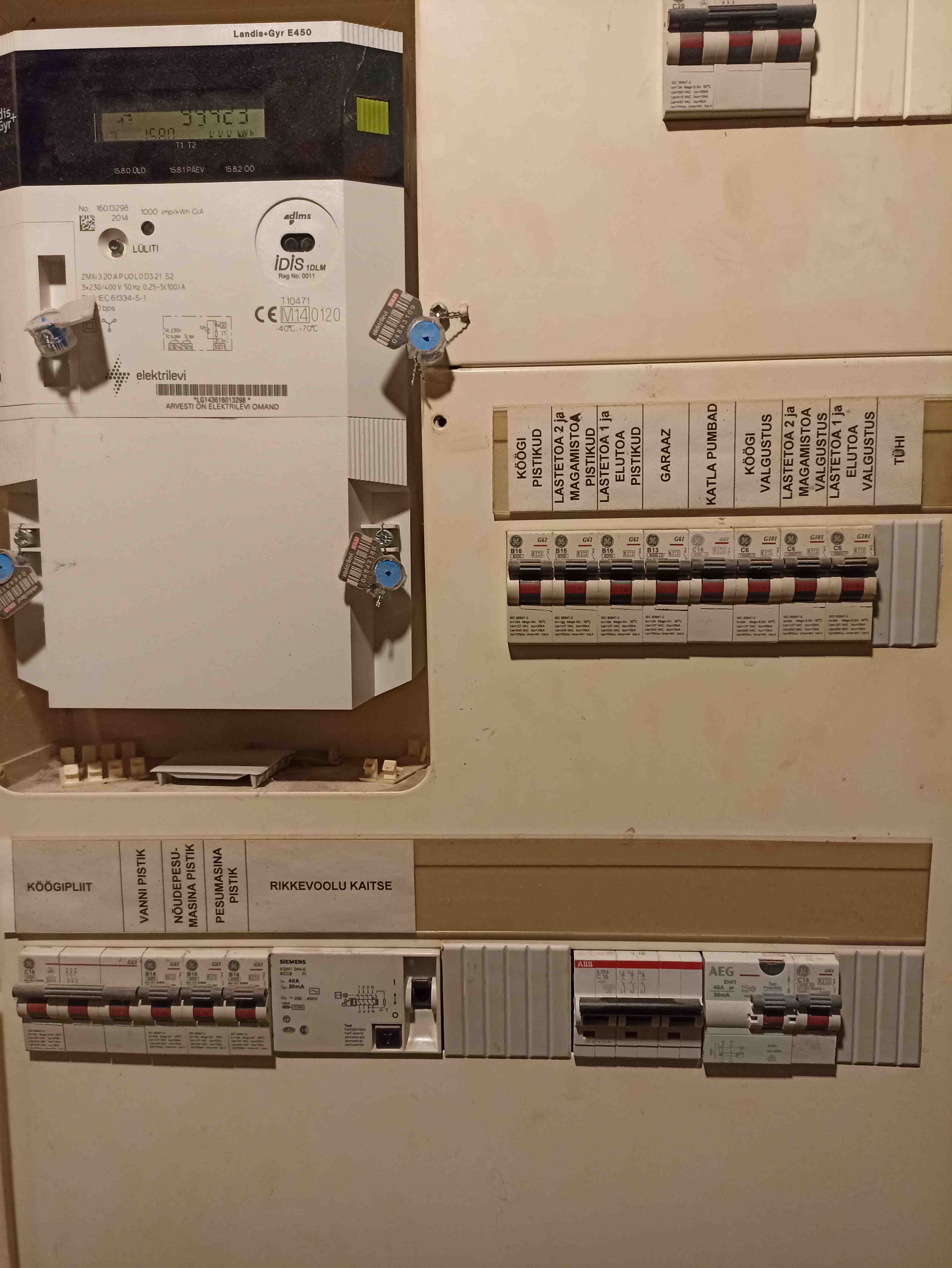 On kaks kilpi. Sisenev kaabel ja suured voolud (ahjud, pliidid, jms.) eraldi. Seal ruumi on, ja tähistamisega probleeme pole. Teises seal kohal (4x12 kohta), on kokku 30 6A (valgustus) ja 10A (pistikupesad) kaitselülitit. Lisaks igasugu muud automaatika, jälgimise ja lülitamise jubinaid.