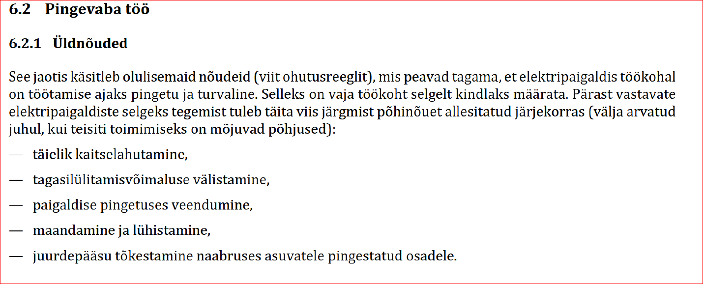 Toimingud. Jaa kindlasti. Elektrik, kes tahab pinsini elada, peab mõned rutiinid endale sisse harjutama, enne kui näppu- või (töö)riistapidi end elektriahela külge ühendab.