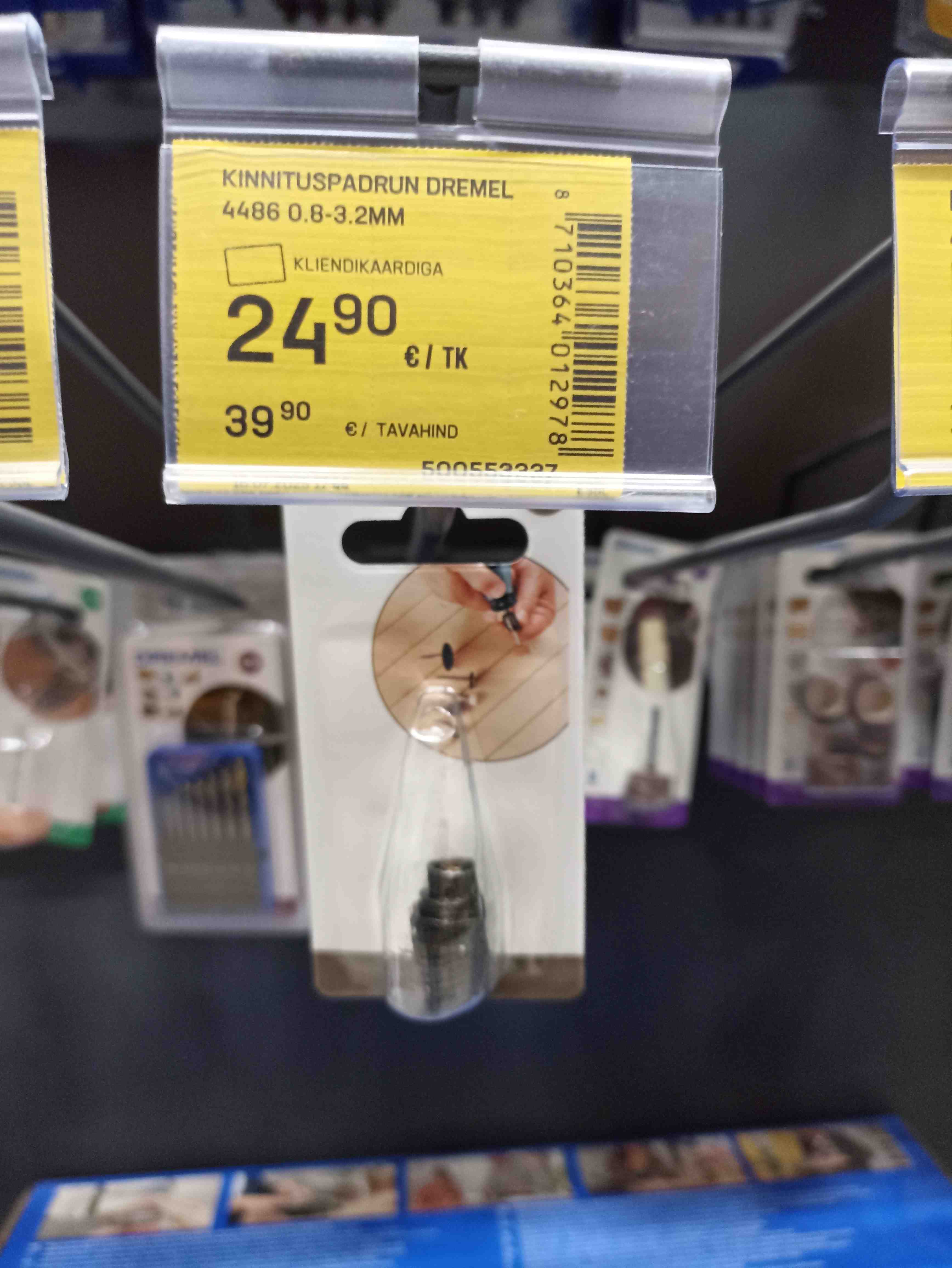 Näiteks puuride sügavuse piiraja. Just täna Depos vaatasin, et müüakse puuri mõõtudele 6,7 ja 8mm ja maksis komplekt mingi 6€. Temust lasin saata teistmoodi piirajad, kusjuures suuremal lähevad sisse puurid 7-10mm ja väiksemal 2-4mm. Ei mingit kuuskantvõtmega jamamist. Sellised https://www.temu.com/ee/2-tk-reguleerit ... goazb4lym0