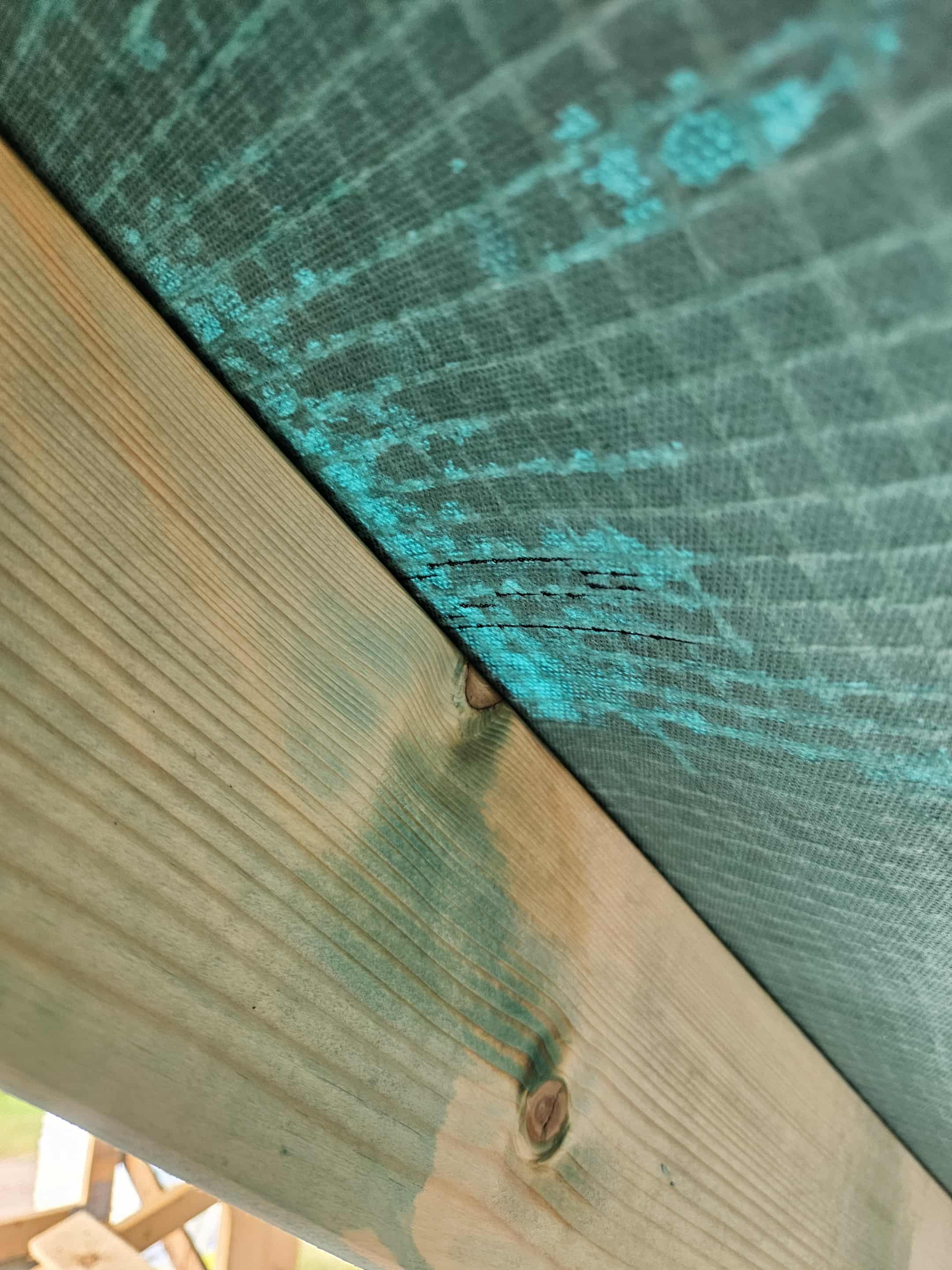 Fermidel oli ogaplaatide ümbruses puidusine ja sai need üle võõbatud RP Wood puidu antiseptikuga. Enamikud kohad olid võõbatud mitu päeva enne aluskatte paigaldust ja juba ka kuivad. Küll aga sai osaliselt veel tupsutatud altpoolt fermidel kohti ka siis kui juba aluskate oli peal ja iga väiksemgi immutusvahendi kokkupuude aluskattega on nüüd rikutud, vihma tilgub läbi ja need kohad on "Läbipaistvamad"
