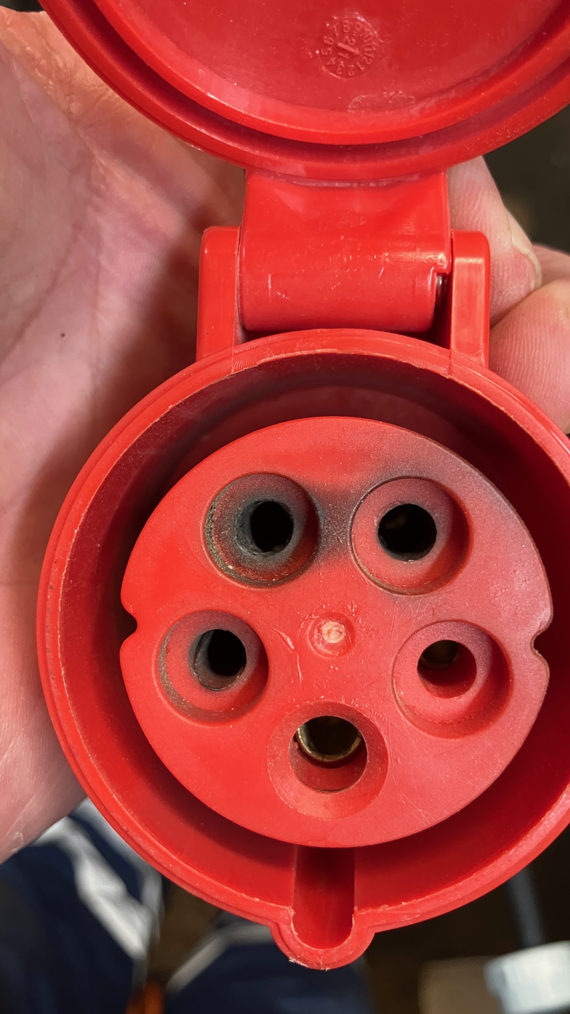 2 soojapuhurit sama veaga (võib eeldada reeglit), tööriista kohta suhteliselt uued (paar- kolm aastat). Omaniku sõnul vähe töötanud. Vool 13,5 A nagu võimsuse 9 kW järgi võib eeldada, üle koormata ei saanud. Järel olid korralikud kaablid 2,5 mm2, probleem ainult pistikutes/ pesades. Kumb pool seal jama põhjustas- raske öelda. Kuid targem oleks jõuosas sellised "elektriseadmed" kohe korralikega asendada. Puhuritel oli näha kerget puidutolmu, kui toss arenenuks korralikuks, võinuks jama lahti minna.