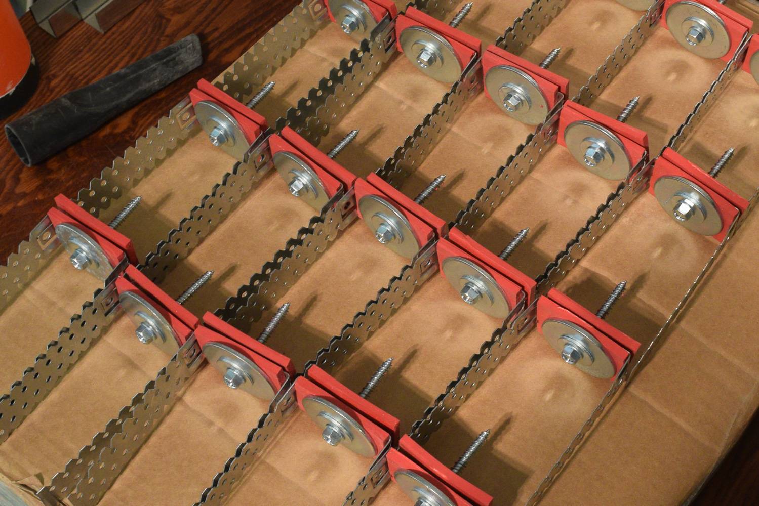 Illustratiivne pilt, millel kipsplaadid malekorras: NB: sellel pildil on töö veel pooleli. Osa kruvisid panemata.