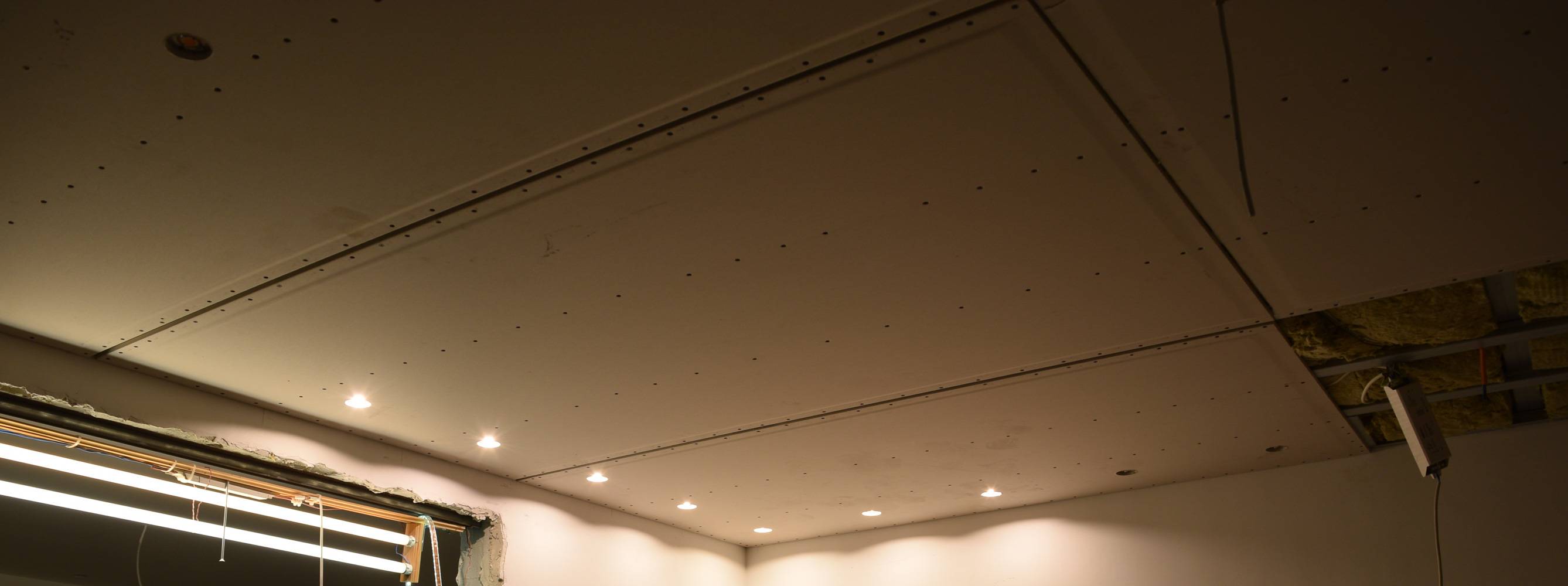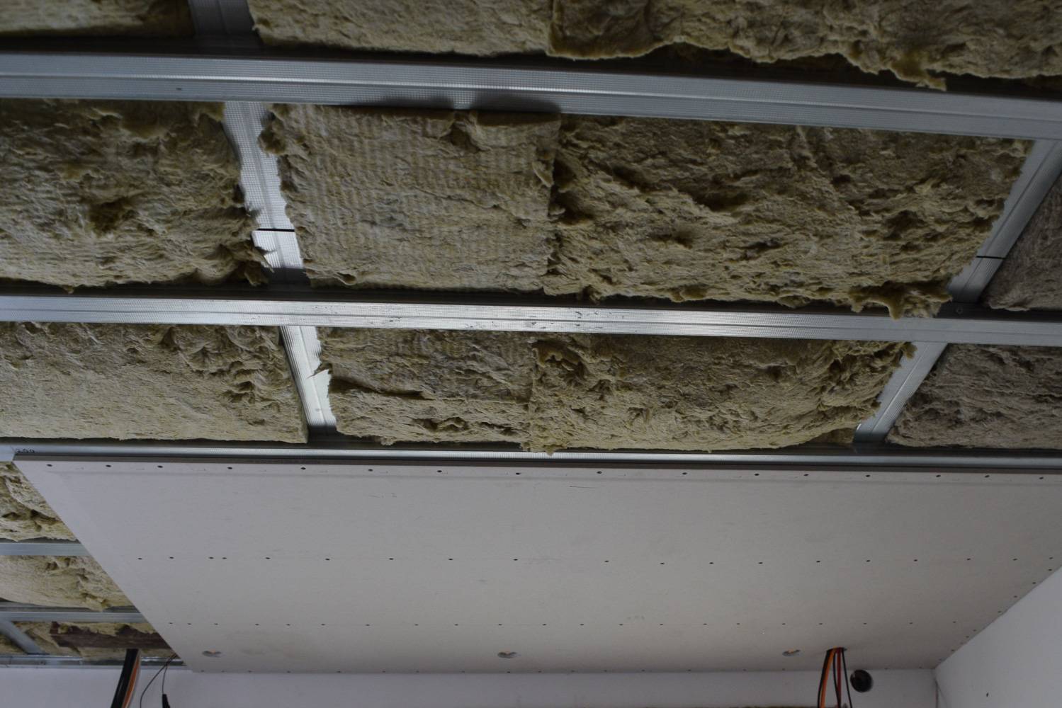 Gyproc 4PRO plaadid, vuukides akrüülhermeetik, tugevdatud klaaskiud võrkteibiga (asetatud vahetult enne peale kantud pahtli (vivacolor LF) peale). Metallkarkass nõuetekohane, ainuke kõrvalekalle on naturaalsest kummist plaadid distantsklambri ja õõnesbetoonpaneeli vahel (akustilisi klambreid polnud saada).
