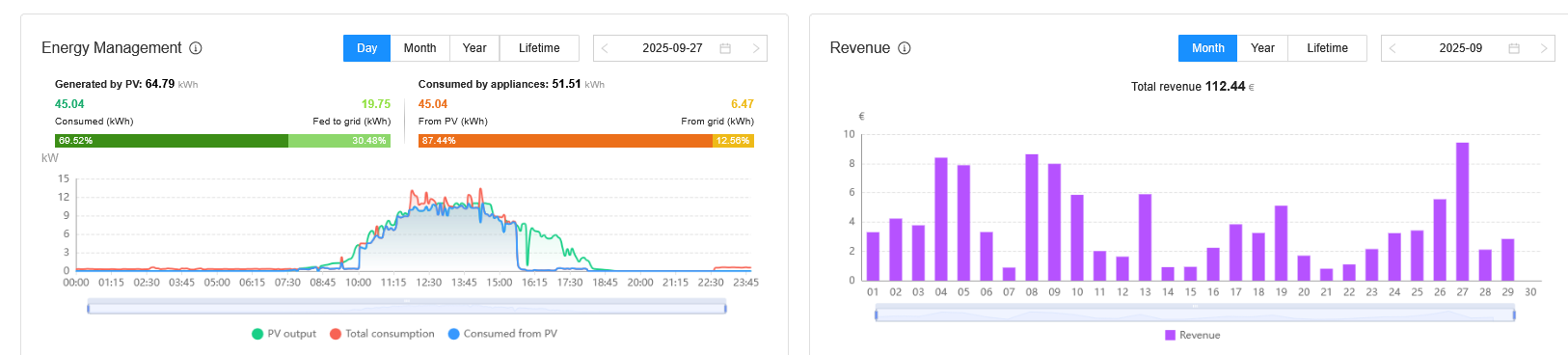 Siit on näha kuidas kogu päevatoodangu pani nahka EV laadimine (see nädal saab 500km ilma laadimiseta sõita). Paremal siis kuu reaalne nn. sissetulek mis ettemaksuks laekub. Lihtsalt fakt, ei enamat.