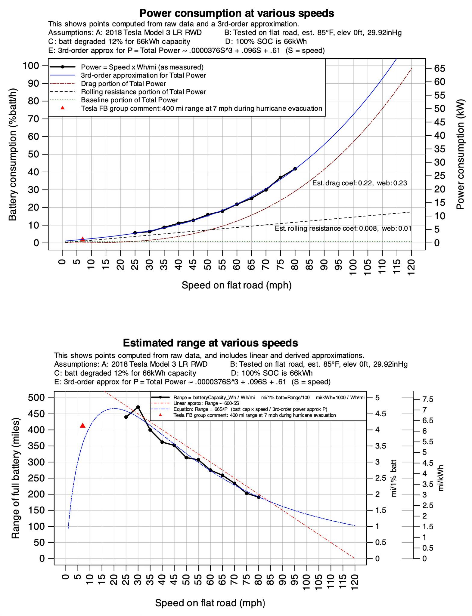 Siin üks tabel Tesla Model 3 põhjal, kus on näidatud sõidukulu ja sõidukiiruse suhet. Teistel EV'del on see % suhteliselt sama kiiruse ja sõidukulu vahel.