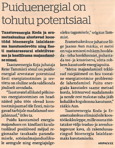 Kui sa oled meediat jälginud, siis see variant pandi töösse kui "sotsiaalmeede" s.t. võimalus vägagi nutusel ajal metsameestele natukenegi raha suunata.tuhatjatuline kirjutas:Vaadake, sõbrad, kui elegantselt meie Riigikogu käitus, otsustades Narva elektrijaamas põlevkivikateldes hakkpuitu põletama hakata. Et on väga kasulik, roheline, taastuv ja mis kõik veel. Ja mis siis, et kolde kasutegur vaid 5 protsenti.