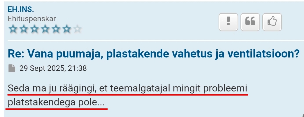 Re: Vana puumaja, plastakende vahetus ja ventilatsioon?
