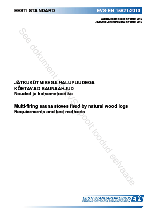See Euroopa standard hõlmab jätkukütmisega saunaahjusid, kus kerisekivid on tulest eraldatud ja kaudselt köetavad tuleleegi ning suitsugaasidega ja millele võib kütust lisada mitme portsjoni (ahjutäie) kaupa. Standard sätestab nõuded, mis on seotud jätkukütmisega halupuudega köetavate saunaahjude projekteerimise, valmistamise, konstruktsiooni, ohutuse ja tõhususega (tõhusus, heitmed) ja pakub nende rakendamiseks juhendmaterjale. Lisaks sellele sätestab see vastavuse hindamise, st esialgse tüübikatsetuse (ETK) ja tehase tootmisohje (TTO) ning toodete märgistamise. See standard on rakendatav käsitsi köetavatele ja perioodilise põlemisega jätkukütmisega saunaahjudele, mis annavad soojust ruumi, kuhu need on paigaldatud. Neid jätkukütmisega saunaahjusid võib tarnida kas kokkumonteerituna või monteeritakse eelnevalt tootja projekti alusel valmistatud komponendid kokku kohapeal vastavalt tootja paigaldusjuhistele. Ühekordse kasutamisega seadeldised siia standardi alla ei kuulu. Neis jätkukütmisega saunaahjudes saab vastavalt kütteseadme tööjuhendile põletada ainult loomulikke (lisanditeta) halupuid. Standard ei hõlma ühekordse täitmisega soojust salvestavaid saunaahjusid, milles kive soojendavad otseselt nende vahelt läbiminevad tuleleegid ja suitsugaasid. Standard ei ole kohaldatav ka mehaanilise kütuse-etteandega saunaahjudele, põlemisõhu ventilaatoriga varustatud saunaahjudele, boileriga varustatud saunaahjudele, sisseehitatud lõõridega saunaahjudele või elektriühendusega saunaahjudele.