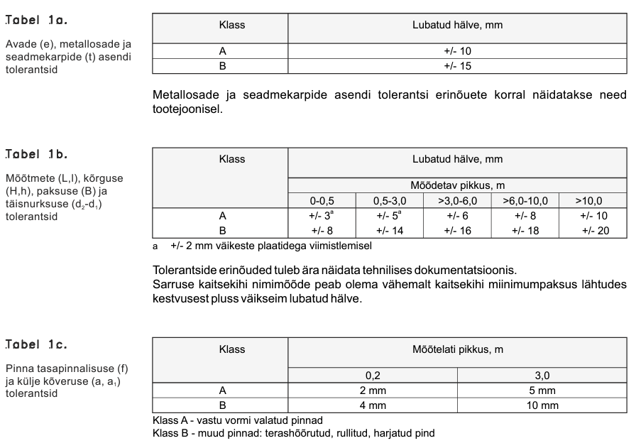 Mis puudutab kõikvõimalikke tolerantse siis need on ka eraldi standardiseeritud ja peavad olema ka tootelehel