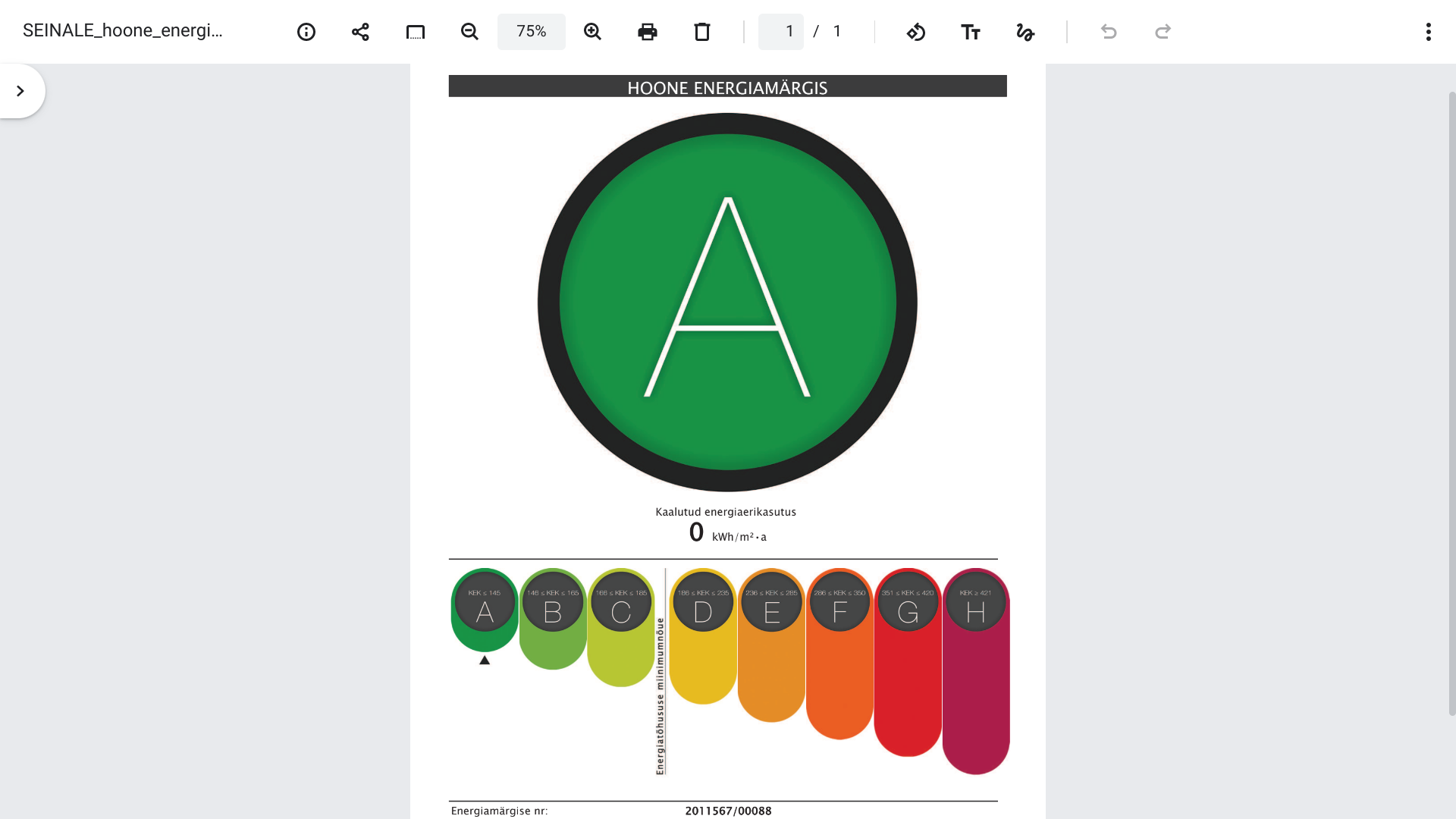 Mis number on energiamärgisel...