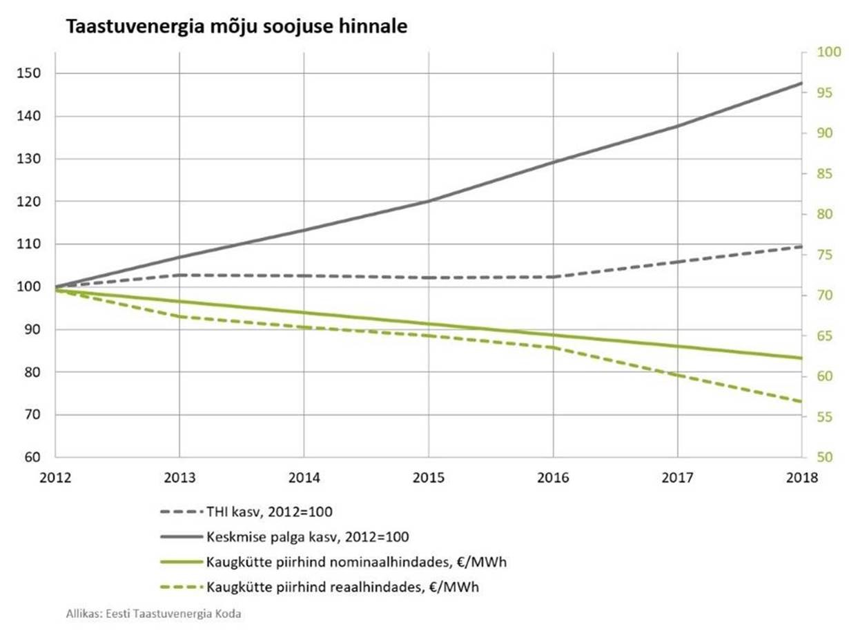 Inimesed saavad samast asjast täiesti erinevalt aru, seega pead täpsemalt selgitama, mida sa taastuvenergia kasutamise %-st täpsemalt järeldad. Siin on näiteks on graafik (usaldusväärsus ei ole teada), mis kujutab taastuvenergia mõju soojuse hinnale enne tänast kriisi. Ma ütleks, et pole paha ja kui see ei peaks tõsi olema, siis ei juhtu midagi, sest ei mahu turule nagu siin klassika väidab. Allikas: https://www.utilitas.ee/hind/Urmas kirjutas: 02 Jaan 2023, 23:22 Val, panen sulle ühe graafiku taastuvenergia kasutamise %-st. Kas mõtlema ei pane. ja see ei olegi nii väga vana graafik. ....