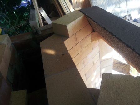 Kamina väliskorpust eraldab koldest ca. 10mm paksune villakiht nii külgedelt kui pealt. Kui vaadata kaminat pealtpoolt, siis viimaste telliste all jookseb nurkraud, millele on antud mänguruumi pikkuses (otsad mähitud klaasriidesse, ja omakorda pehmendatud villaga). Järgi jääb muidugi paisumine paksuses, aga sellega ei oska ma enam midagi teha.