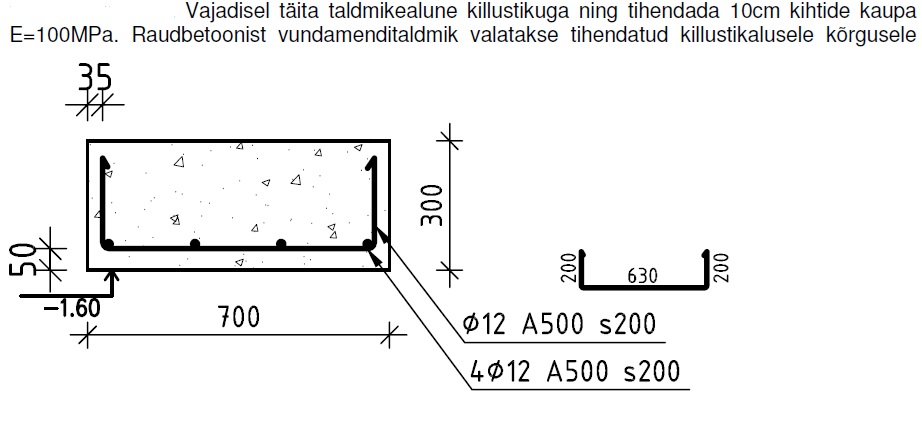 Sellest mina järeldan, et eelpool kirjeldatud taldmik, 700 mm laiusega, pole määratud mitte tugevuse eesmärgil vaid, et nõrgal aluspinnasel oleks vundamendi tald piisavalt laia kandepinnaga hajutamaks koormust laiali.