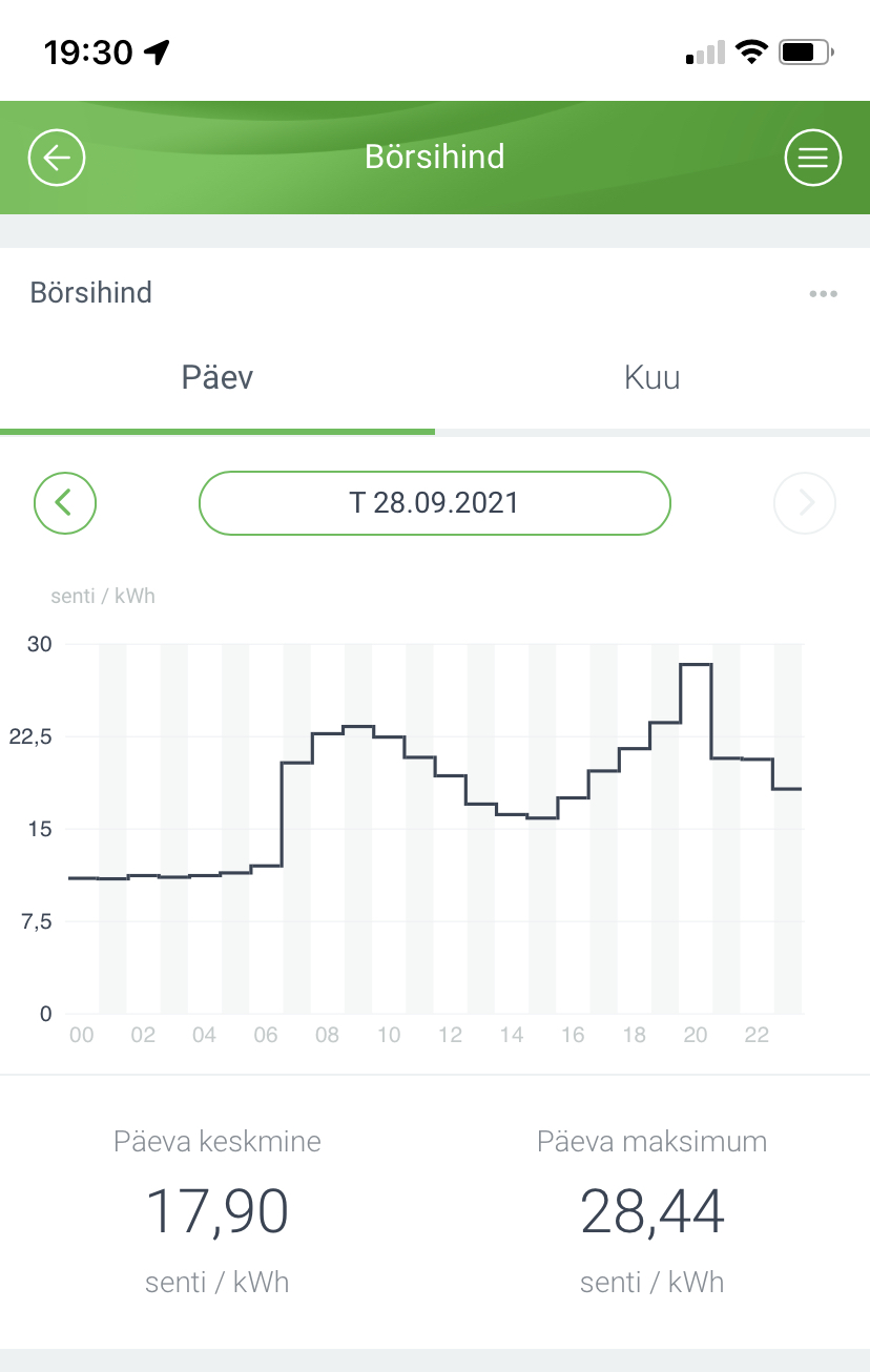 Minul oli septembri tarbimine 878 kWh, elekter 14,6 s/kWh + muu 5,9 s/kWh = 20,5 s/kWh.