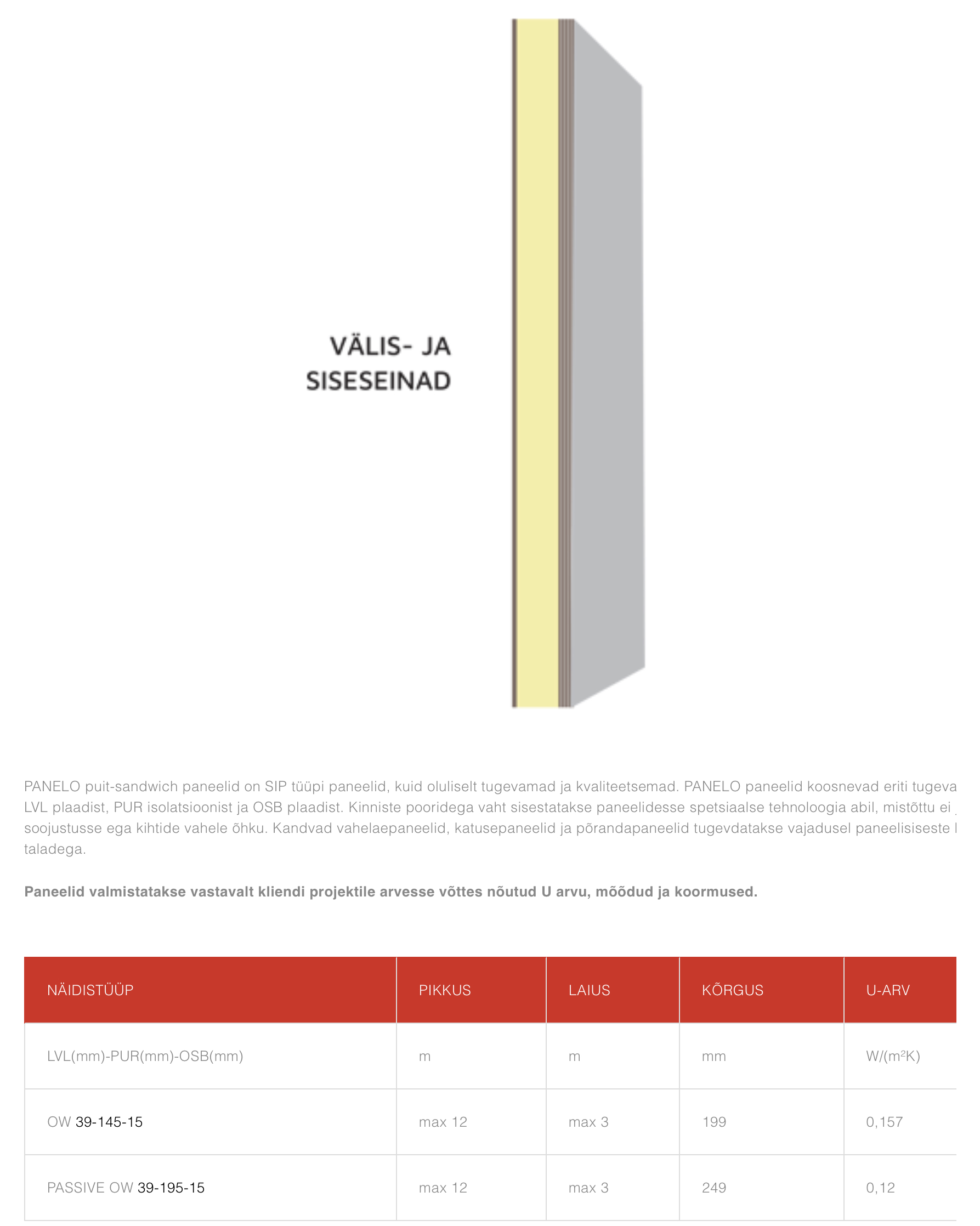 Kinnisidee on väliseinad, vahelaed ja katuslaed ühe päevaga paika tõsta, täpselt ja eelplaneeritult. Ja soov on vältida nii ehitustöölise kui ilmastiku riski välisseinte/vahelagede/katuslagede teostamisel. Ja soov on saada õhukest seina (arhitektuuri ambitsioon ka), sellest lähtuvalt on soov teostada suletud PUR seina, seina/toa kõrgus plaanitud 3,4m. Mis on suletud PURi alternatiiv õhukesele väliseinale? Või mis on siis üldse meie pealinna kliimas võimalik alternatiiv kivile/penole/villale? Millega saab kogu seina 30sm teostatud? On meil selline kliima, et PANELO paneel läheb hallitama või on puitkarkassi-külmasilla temperatuur tegelikult külm?