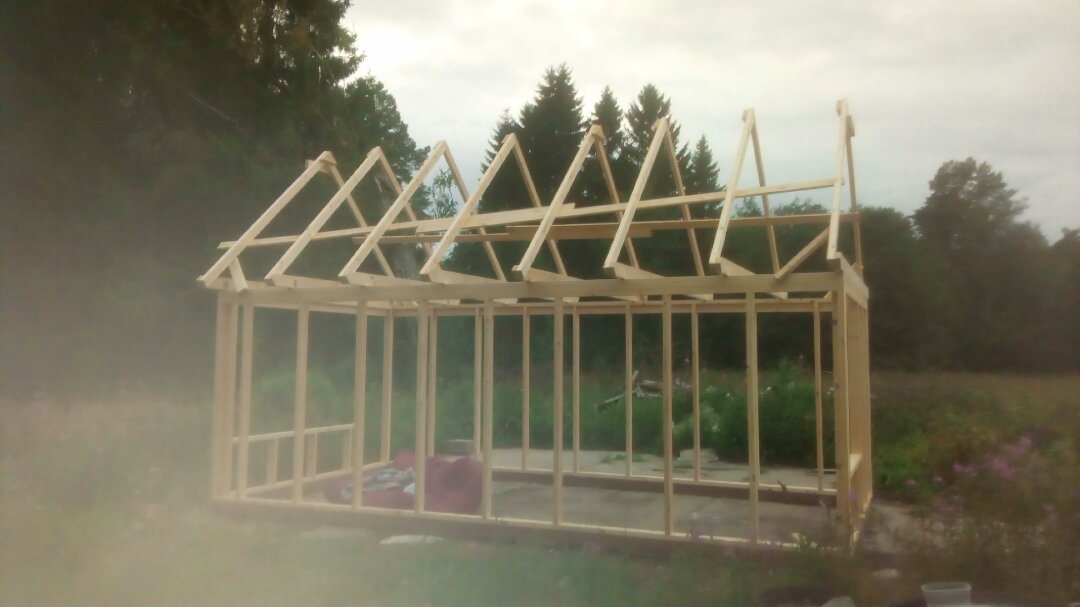 Karkass on püstitatud vanale betoonpõrandale. Alusraam on 100x100 immutatud prussist, prussi ja betooni vahel on ruberoid ja kuna karkass sai tehtud madal, siis põrand on plaanis teha alusraami sisse. Suvemaja hakkan kasutama soojemal perioodil, nii et kütteks tulevad vb paar elektriradikat. Kuskilt sain kunagi idee, et panna alla vananemiskindel kile ja siis alusraami vahele põrandalaagid (ja laagide vahele peno?) , kuid kui siin foorumis erinevaid teemasid lugeda, siis hakkasin sellises ehitusviisis kahtlema ja seega loodagi saada mõnda paremat ideed