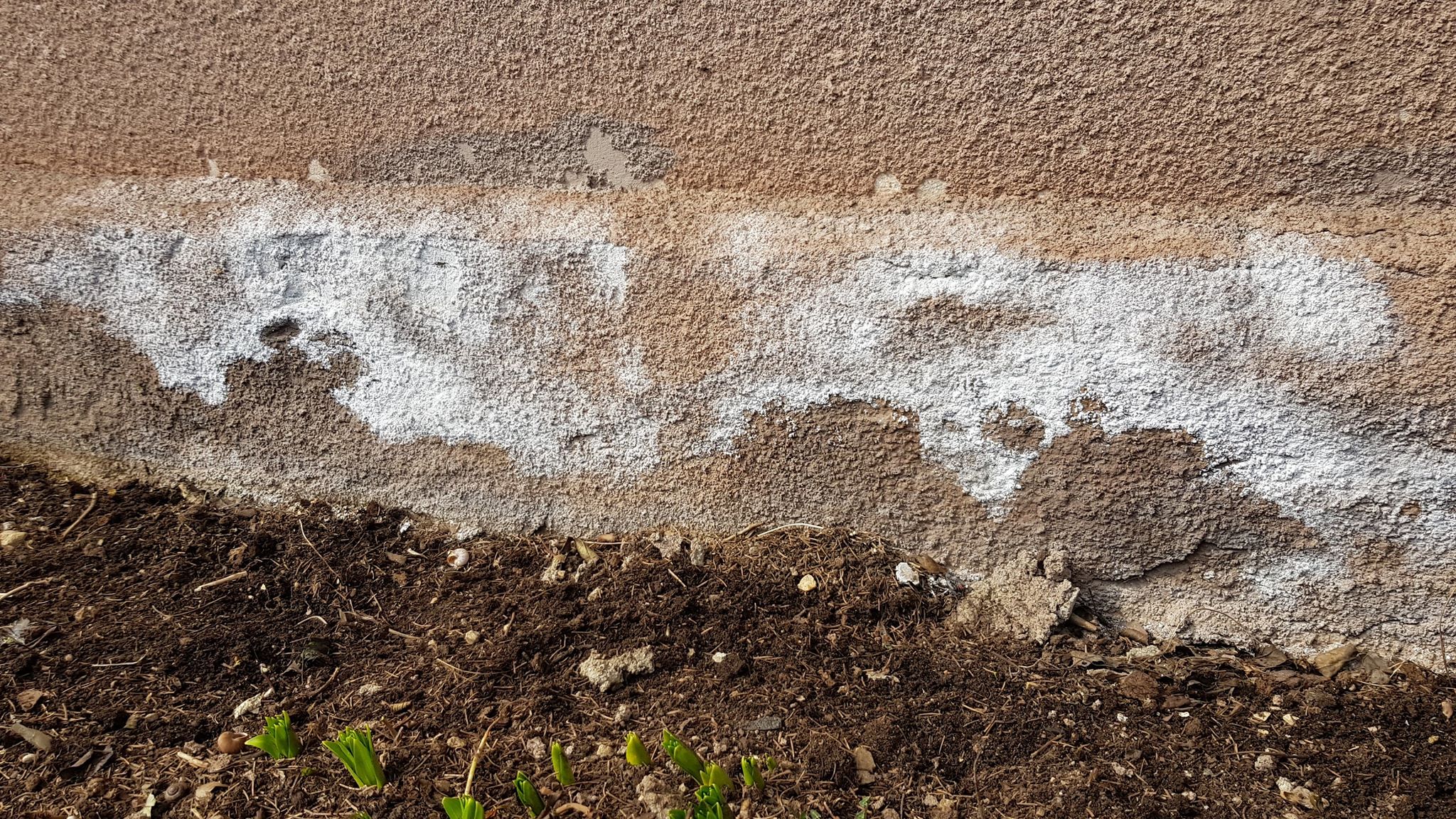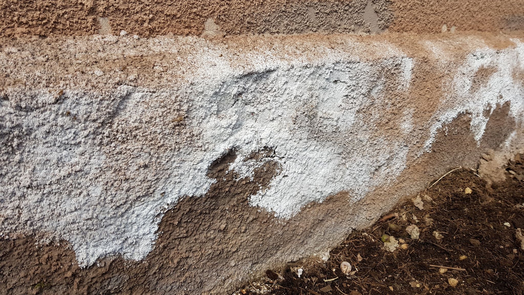 Ongi tõenäoliselt soolad. Kui kivimaterjalid tugevalt niiskuvad, siis kuivamisel transpordib niiskus kivimaterjalidest soolad pinnale.