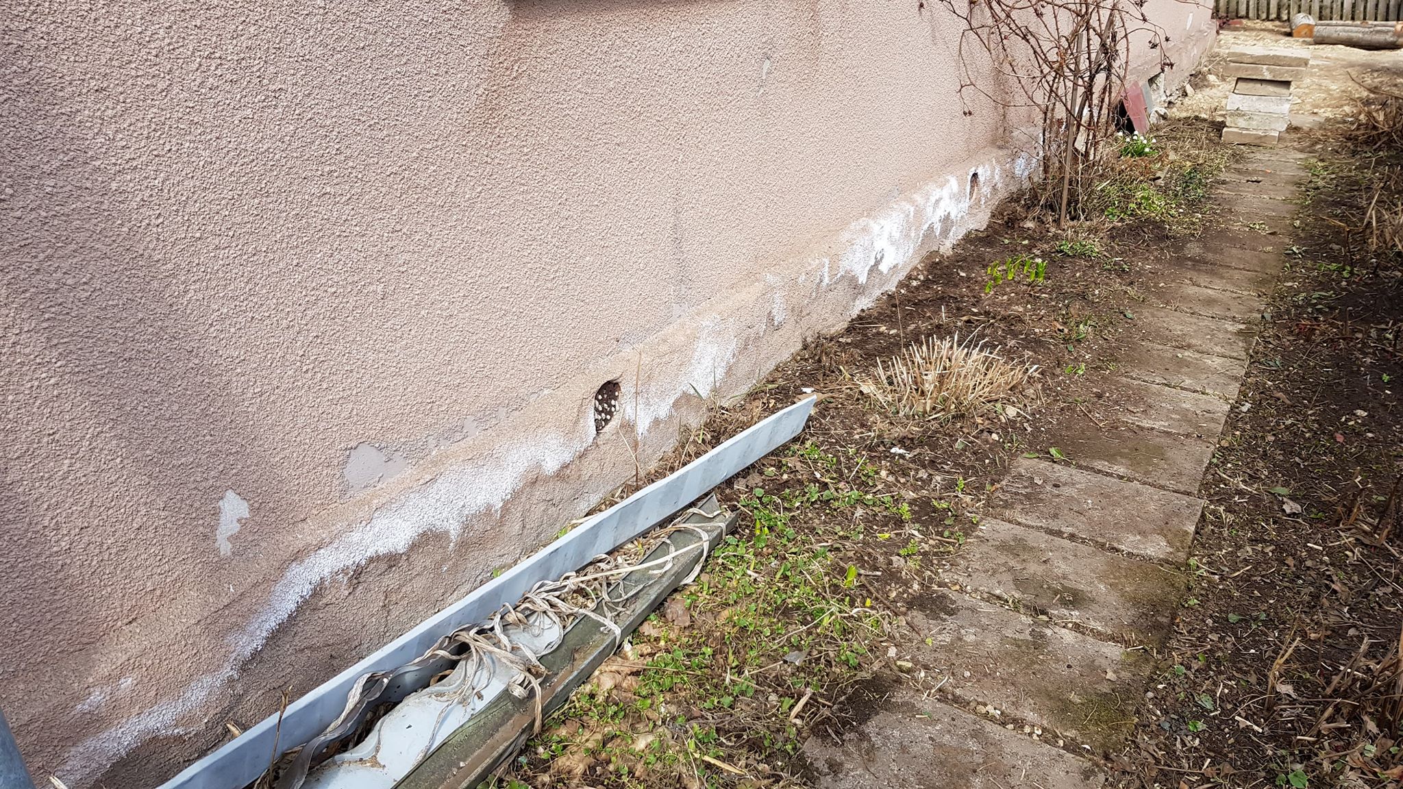 Maja sai seespoolt rekonstrueeritud. Majal lõigatud alumine palk maha, asendatud fiboga. Vundamendi alumine serv (segu kiht peamiselt) on üsna pude, justkui lubjane. Talvel oli seespoolt vundamendi servas näha ka valgeid kobardunud kobakaid (nagu kristallsed) tükid, meenutas nagu soola vms. Nüüd kevadel avastasin, et see on ka väljapoole löönud. Väljapool on nagu hajunud laiali. Millega võib olla tegu? Esineb vaid mingil osal vundamendist.