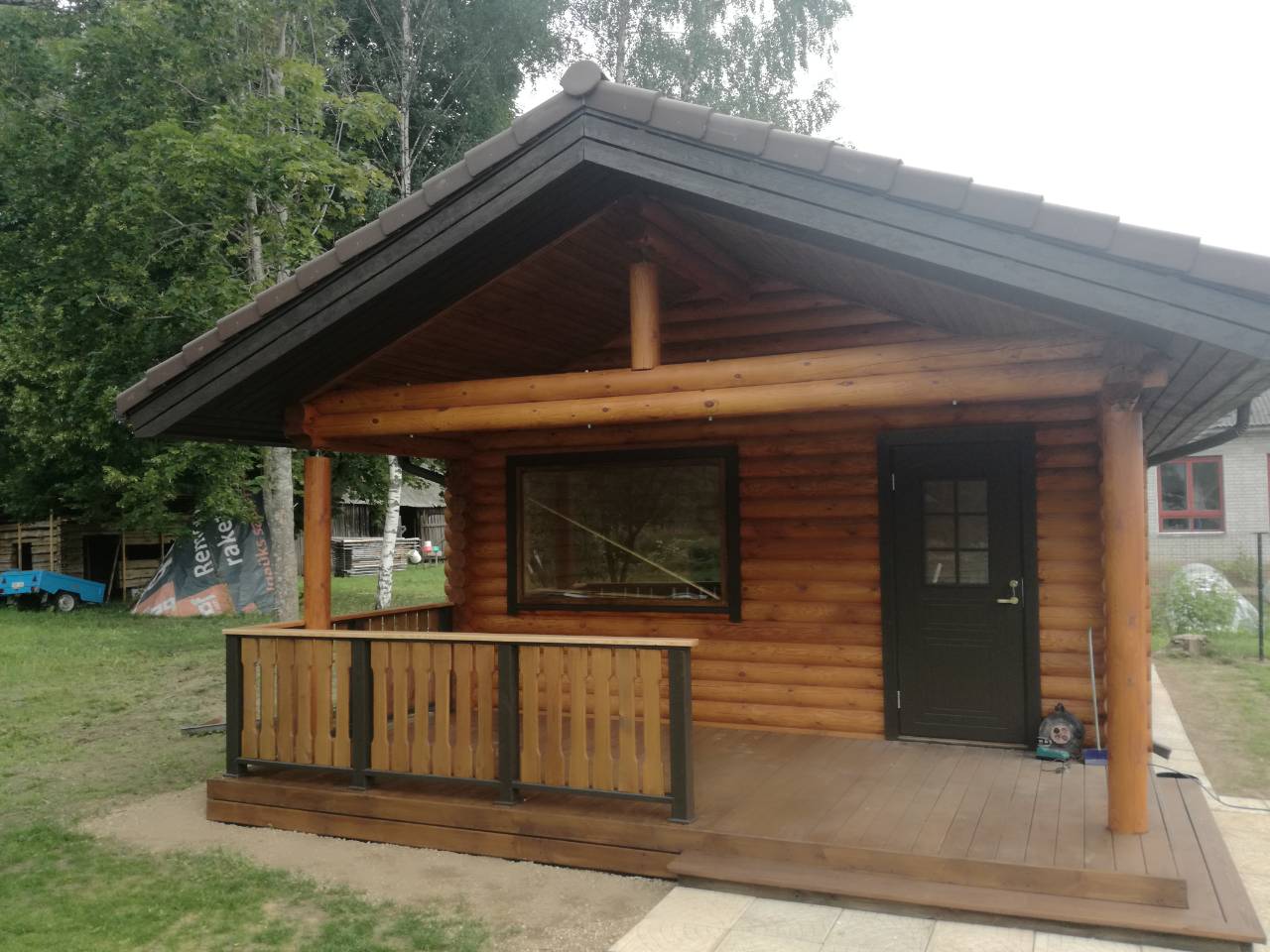 Tegemist on uue kolme ruumi ja terrassiga 180mm palgidiameetriga naturaalse niiskusega männipuidust palksaunaga, mis toodetakse kliendile tehases. Majas on eesruum, pesemis- ja leiliruum (nende kohal ka magamiskohad). Palgid on liinilt tulles kohe töödeldud kvaliteetse lõhnatu ja värvitu antisepikuga, mis kaitseb puitu sine ja muude haiguste eest, ning lisaks säilitab puidu kauni naturaalse tooni.