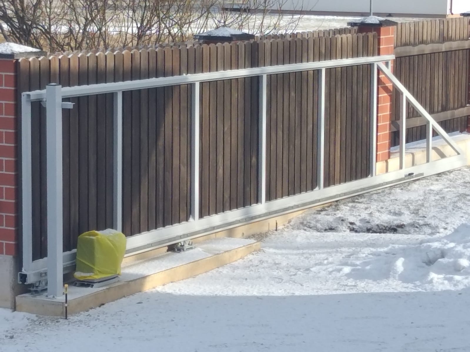 Aiameister OÜ (Suur-Sõjamäe 30H) valmistas ja paigaldas liugvärava, mille juhtsiin on kõver. Kõveruste tõttu liigub avanedes värava tagumine ots kõveralt, horisontaalist alla 5 cm ja piirdeaiast eemale 8 cm suunas.