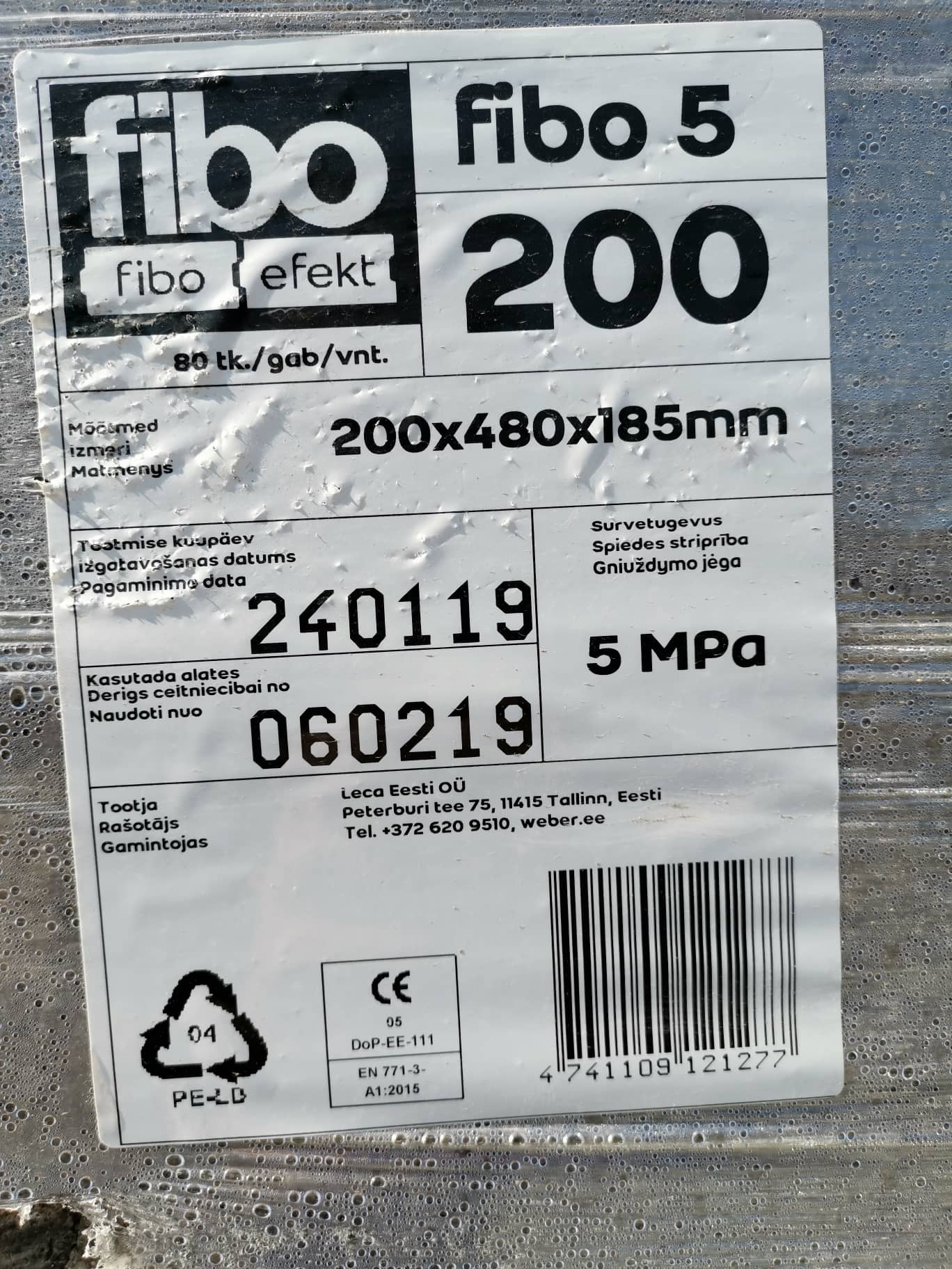 Ehitusest jäi üle 3 alust avamata pakendis Fibo 5 200 tapiga kivi. Hind 1,5€ kivi, 3 alust kokku 360€. Ostja transport. Asub Tallinna külje all, Luigel.