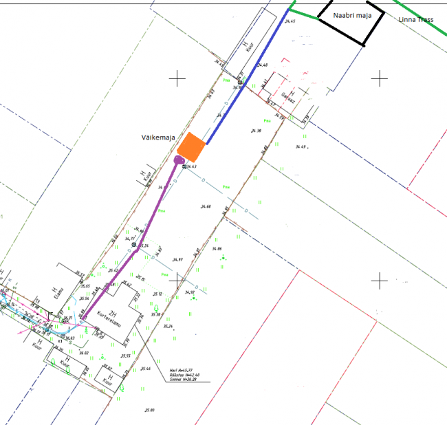 On krunt - kahekordse kortermaja ja suure aiaga. Soov oleks aia tagumisse ossa teha väikeehitis koos elektri, vee ja kanalisatsiooniga. Esimesed kaks on suhteliselt lihtsasti teostatavad, viimane aga mitte nii väga. Kortermaja reovee äravool linna trassi asub umbes 35.50 m kõrgusel (maja edela nurk), planeeritav kuut aga u. 34.40 m peal. Kahe punkti vaheline distants on ca. 50 meetrit (see siis teeb umbes 1,5 kraadise tõusukalde)