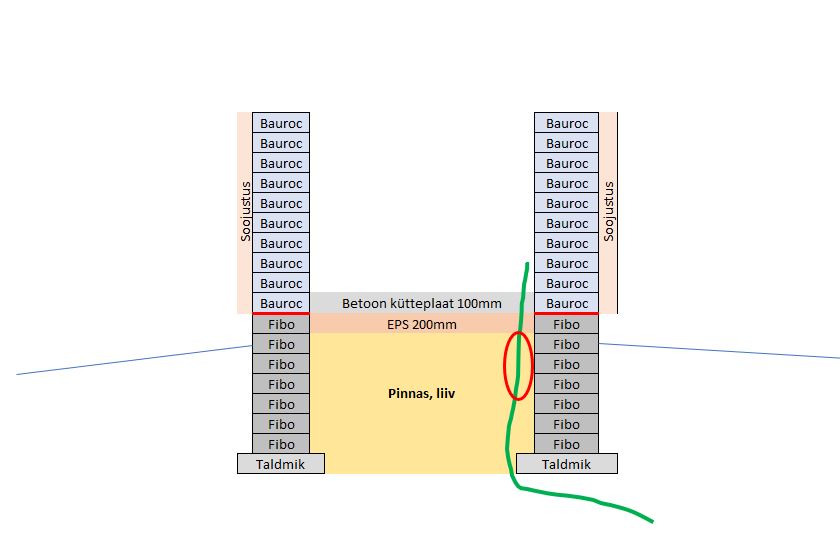 Tuleb ikka küttega ruum. Ilmselt mõtlen üle, aga mõtlen, et kui vundale soojustust ei pane, kas siis selles kohas kus veetorul (vee toru on roheline joon) on punane ring ümber, sealt ära ei külmu..