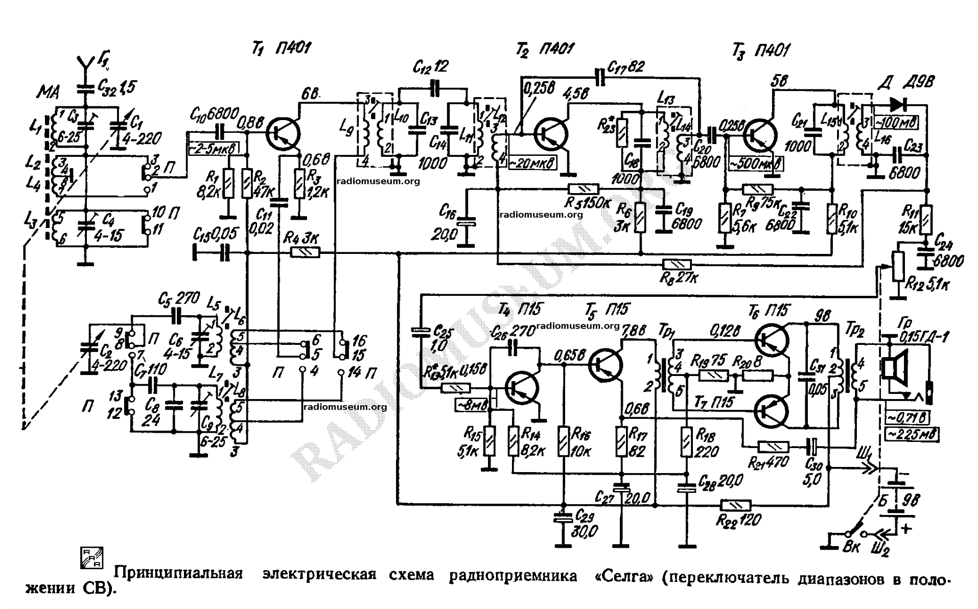 Originaalne Selga disain oli П401/П15 transsidel (MП37...42 eelkäija) ja 1 dioodiga!