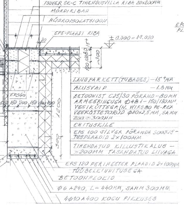 2016 tehtud projekt. Autor oli 76 aastane kui selle koostas. Ütles toona, et temal läheb käsitsi kiiremini kui arvutis. Sokkel jääb üle 300mm. Kasutatud fibo on 250mm kõrge ja ei hakka päris maapinnast vaid kõrgemalt.
