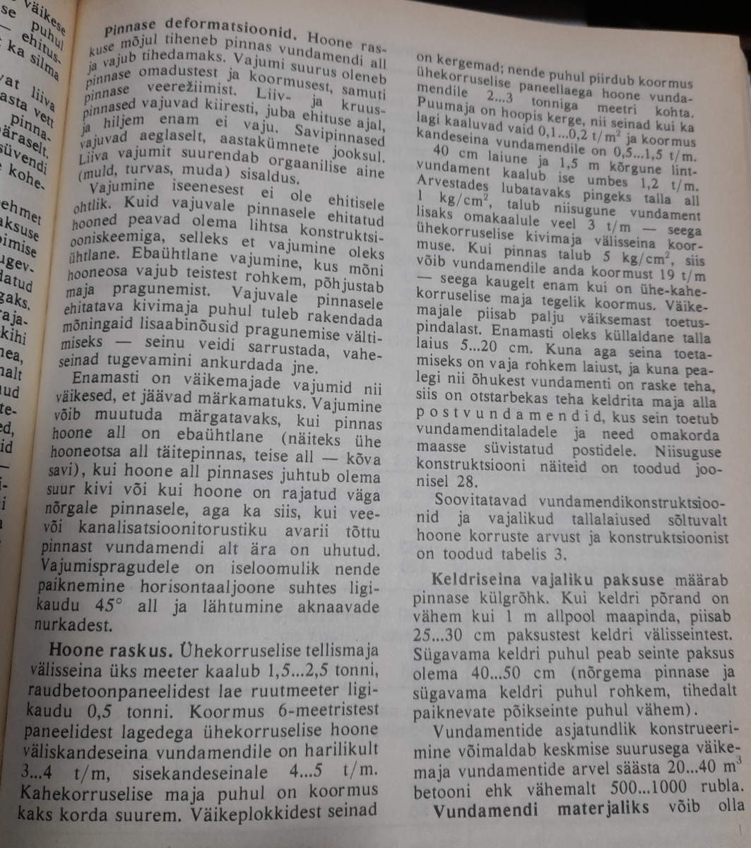 pinnasest räägib ka seal mõni leht enne ja selle kandevõimest. Päris Insenerid teavad paremini, aga ära lase ennast segadusse ajada näiteks postide kandevõime kohalt ja maapinna (posti(jala)) kandevõimega. betooni puhul on posti kandevõime nö. tohutu aga probleem seisneb selles, et posti enda kandepind on nii väike, see millele post toetub, maapinnal, mille enda kandevõime on väike. ehk kehva kandevõimega pinna puhul peab olema suurem vundamendi pindala - ala rohkem poste, suurem taldmik postil/lindil. jne jne see on võhiku refereering.