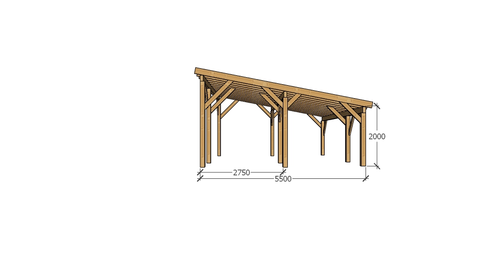 Ma ise teeks natuke ringi paneksin 5,5 kui kõige kriitilisemad kastust kandma otse ja nende samm tuleks vastavalt tugevusarvutustele. (tõenäoliselt rohkem kui 2 postivahet tuleks). Sõltub kui palju on lubatud seda diagonaali madaldada. Antud joonisel tuleks arvutuslikuks sildeks 2 diagonaali vahel oleva lõigu pikkus (mitte 5,5 m) Tihedam samm tagab, et postid on OK kandevõimega.