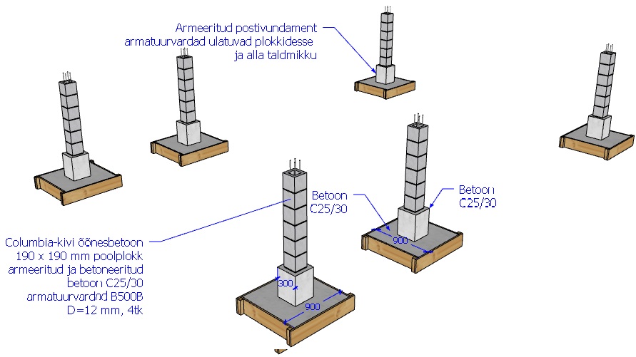 Kasutaja Vuuk välja toodud Columbia kivist lahendus ei läheks minu puhul käiku. Tahaks vundamenti teha postidele nii, et võtan mõnad parkla kivid vajaliku koha pealt üles ja siis postipuuriga auk maasse ning ventilatsiooni toru raketiseks millesse armatuur ja betoon.