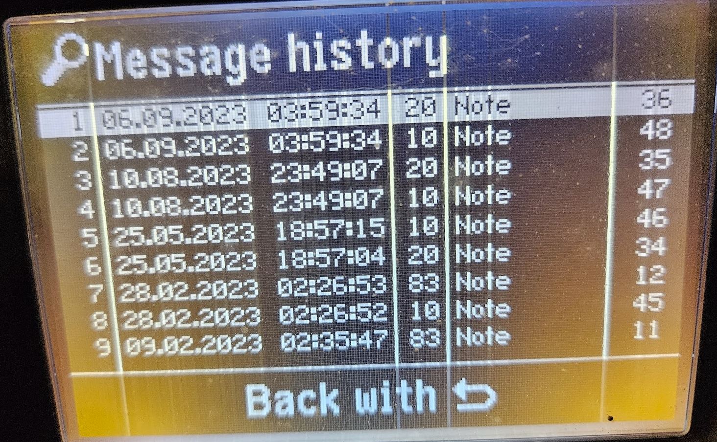 Kaevates nüüd menüüdes ja võttes kõrvale tehnilise manuaali mis on 336lk pikk, siis selle järgi tundub olevat veakoodid 10,20 ja 83. Number nende kõrval näitab mitu korda see olnud on.