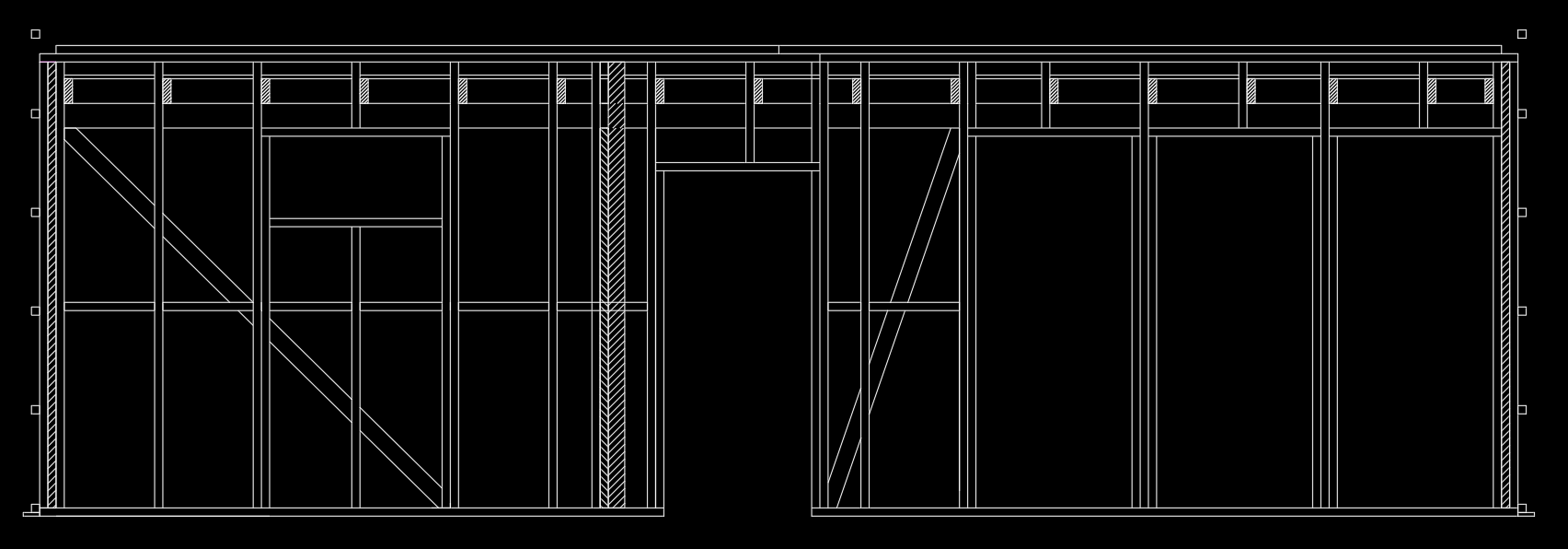 Joonistel olid osad kihid välja lülitatud, diagonaallauad on olemas. Kandvad seinad on 50x100, sinna juurde tulevad veel 2x 50x50 soojustuseks.Kuna ühtegi diagaonaali ei näe (ei pea olema iga sarika vertikaaltugede vahel ja igas vertikaaltugede vahes) siis näen probleemi kompoti stabiilsuses