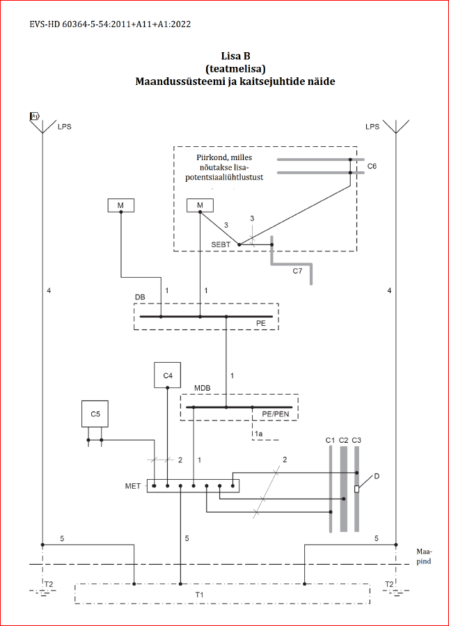 Lisan tüüpmaandusskeemi, kus on LPÜ-ga (joonisel üleval) VAID SISENEVAD METALLTORUD (ka kanalisatsioon võib minna selle alla) ja seda ka vaid 7-701 alusel ehk vannitoad ja duššid. Veemõõtja tavaliselt vannitoas ei asu. Kui asub, siis ka 7-701 jutt. Täpsemalt on kõrvaliste juhtivate osade LPÜ-ga ühendamine kirjutatud lahti hoopis 7-702 Ujumisbasseinid ja purskkaevud ja ka seal on paljud metallosad jäetud "õhku" ja seda ka tsoonides 0 ja 1. 2. Puuteeelne- ja puutepinged: