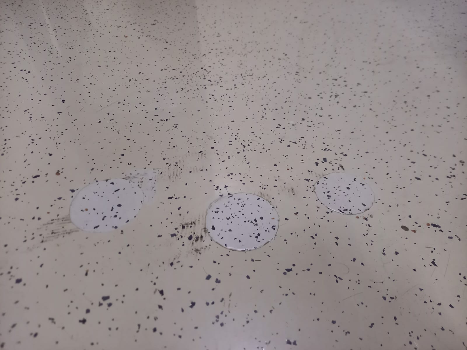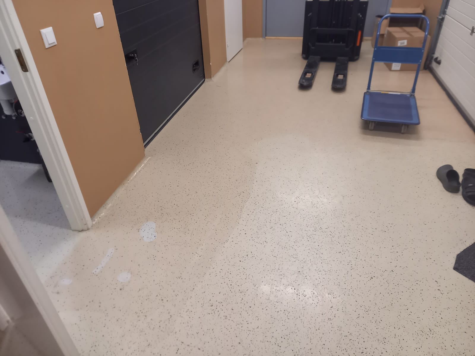 Valamiseks on kasutatud epoksüpinnakatte segu, pealislakki eraldi peale pole pandud. 2016. aastal valati esimest korda hoonesse epoksiidpõrandad, ka sinna pealislakki ei kantud ehk tehnika on täpselt sama, mis 5 a. hiljem valatud põrandal. Küll aga näeb vana põrand palju värskem, ilusam, heledam ja läikivam välja kui uus põrand.