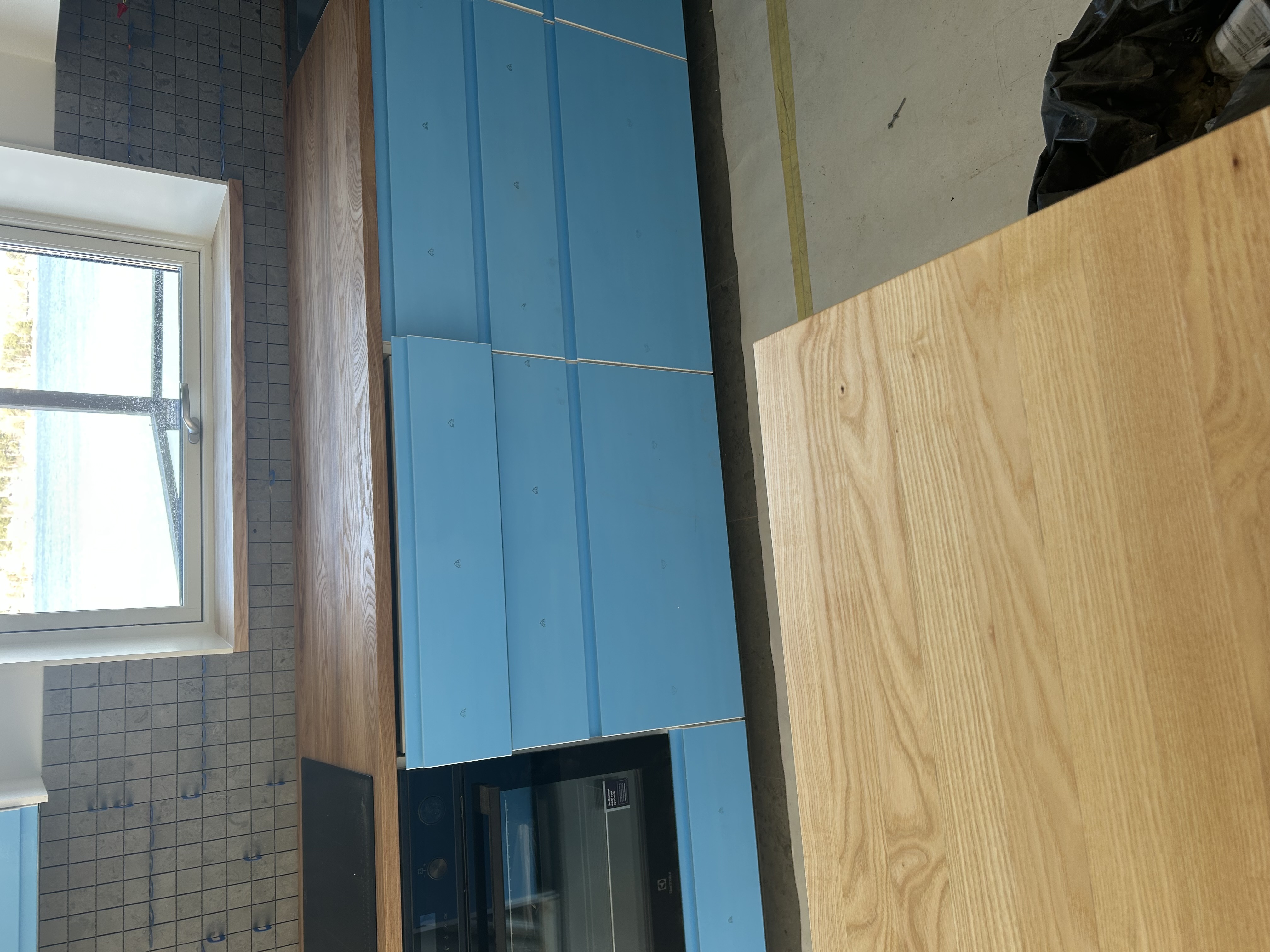 Enne paigaldust otsustas klient teha õlitamise ise. Kasutati sama õli (Herdins Köksbänkolja PLUS), kanti peale kaks kihti ja kaeti korrektselt kõik pinnad, sealhulgas alumised küljed.