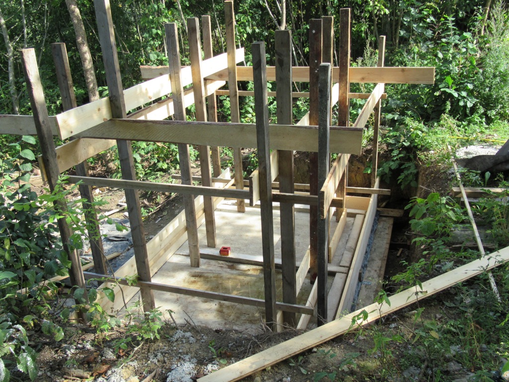 Sissesõidu tee betoonimasinale. Viskasin kildu alla ja ilma killuta oleks masin sinna raudselt kinni jäänud. Pildi pealt võibolla pole näha, aga kalle on päris korralik, lisaks maakivi hoone kivimüüritise vana jälg, mis toimis tõkiskingana, olgugi , et mõlemalt poolt kildu kõvasti peale viskasin, masina mass lihtsalt oli nii suur, et kild vajus kokku.