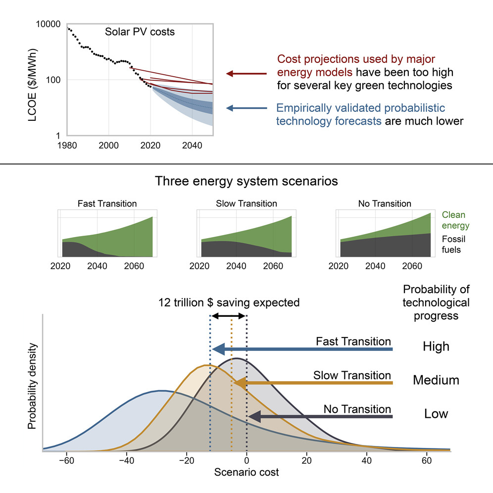 See uuring on tehtud reaalsete andmete alusel ja jõuab tulemusele, et tänased ja varasemad energeetika arengut käsitlevad otsused (põhinevad enamasti LCOE metoodikal) alahindavad taastuvenergia kulude alanemise ja kasutuselevõtu määra. Seda näed joonise ülemiselt osalt (cost projections... vs empirically validated ...).