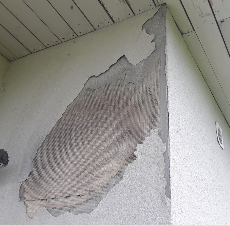 Majal on läbimõtlemata gaasikatla korstna tõttu tekkinud üsna suur krohvikahjustus nagu alloleval pildil. Kuidas oleks seda kõige mõistlikum parandada? Plaan oli selline:
