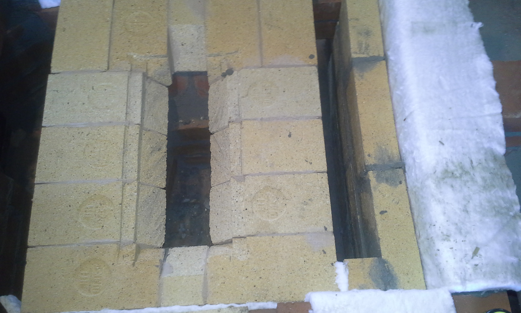 Sisevooder algab nii madalalt, sest jälle laiskus sai võitu ja no ei viitsinud seina sisse nikerdusi leiutadamis oleks voodrit kandnud ja välisseinad on mul tehtud kitsast tellisest. Ainult tagumine sein on laotud laiast tellisest alumine osa kuna senna sisse voodrit ei tule ja koldepõhja kõrguselt üle minnes kitsamale tellisele tekib mulle vajalik serv millele toetasin kolde tagumise serva. Lisaks ei tahtnud mingit raskust panna toetuma poole seinapealt kuna mõistus arvas, et mingite valede pingete puhul hakkab seina välja murdma ja panin voodri kandma ahju põhja.
