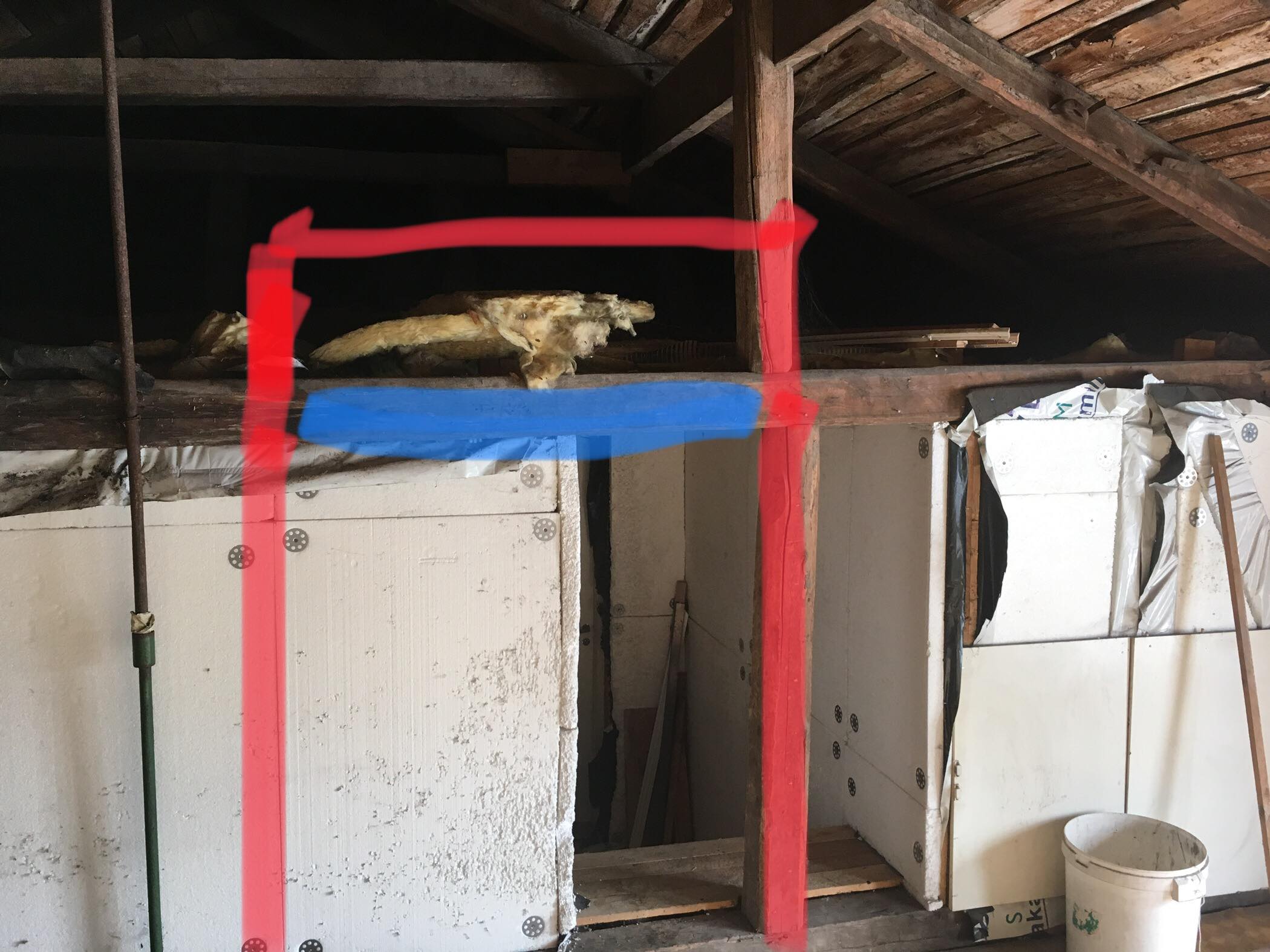 Pildi pealt näeks siis plaan välja selline. Et punasega oleks siis uus ukse ava koht. Kuid mida teha selle tala jupiga mis on sinisega? Kas selle võib sealt vahelt ära võtta v mitte ? Äkki vajub kogu kupatus laiali ? Andke ideid kuidas võiks antud olukorras asjale läheneda.