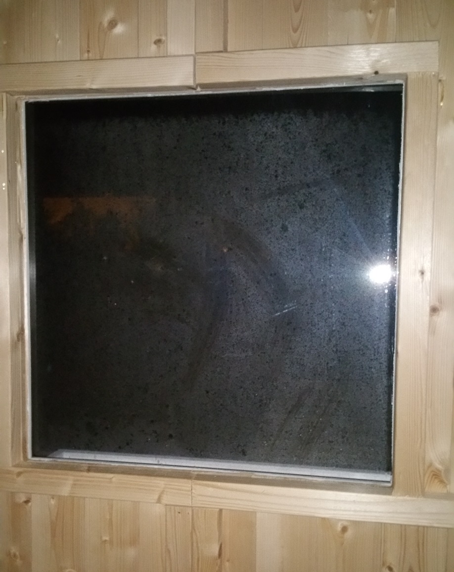 Mängumajal 3 aknaava, hetkel neil ees plastikust "klaas", mistõttu sooja ilmaga on majas paras saun.