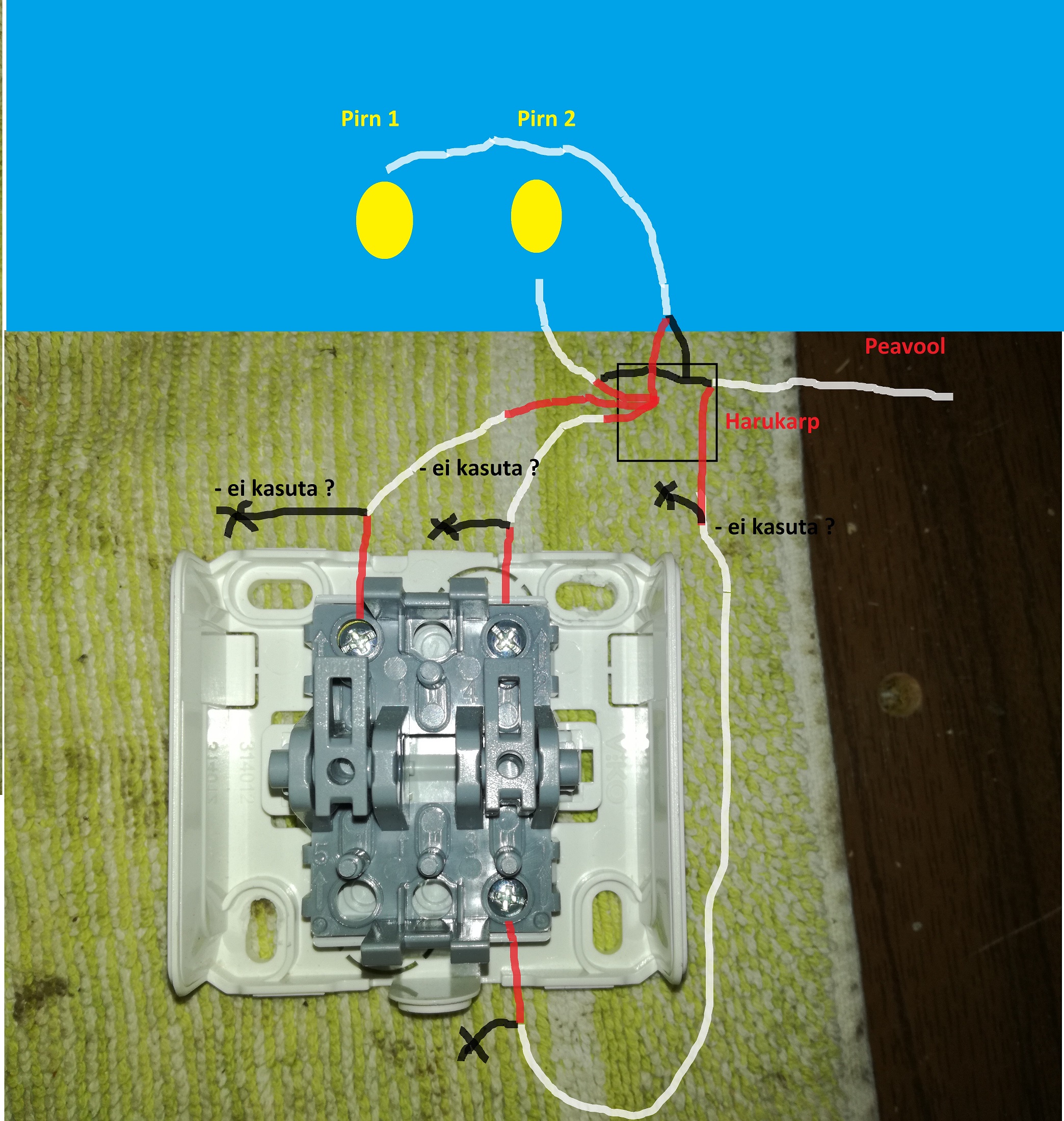 Sai siis ostetud 2 lülitiga lüliti ja tekkis väike segadus.